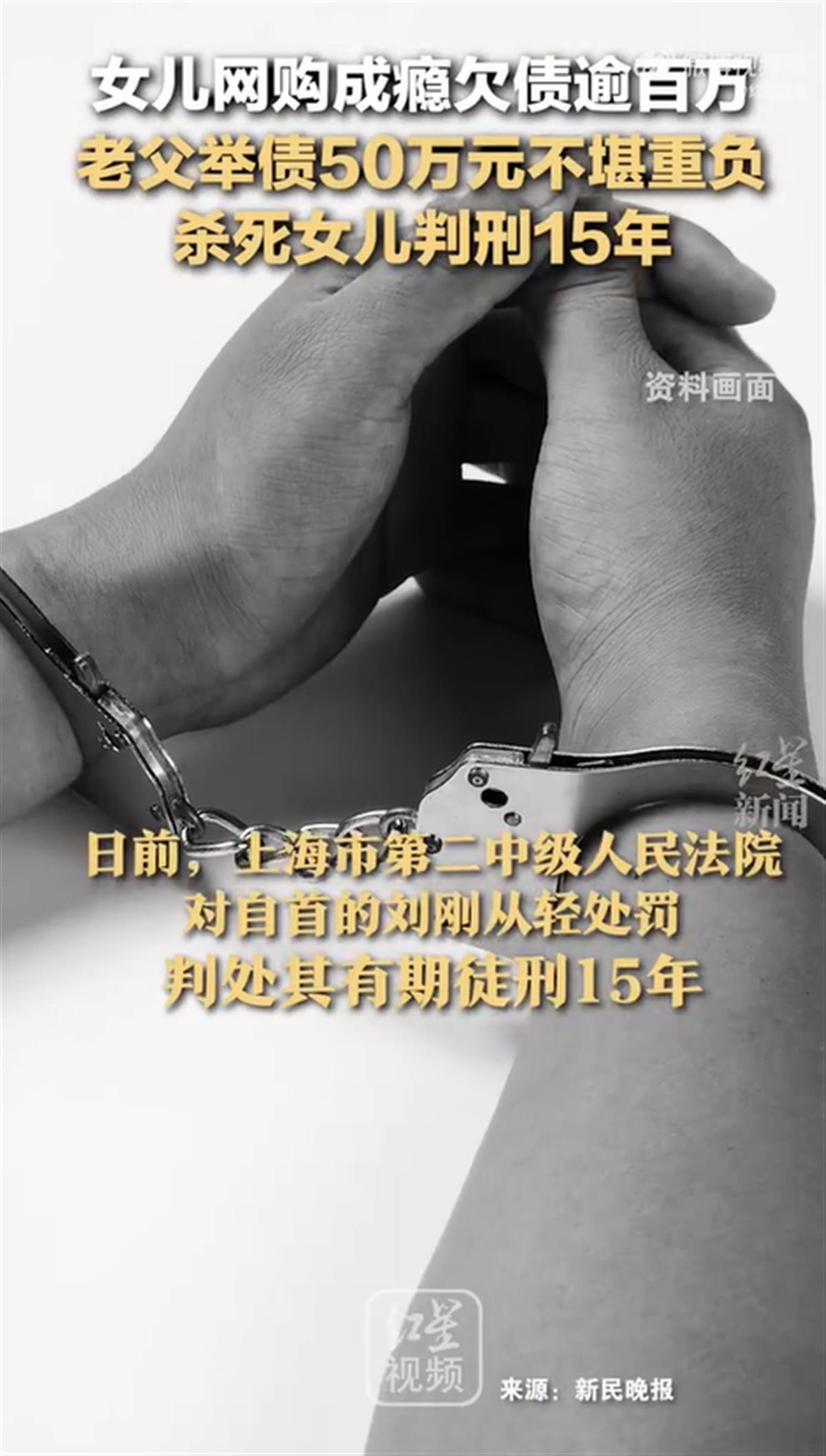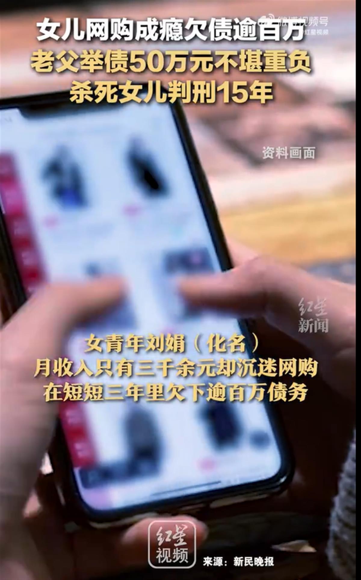 女儿月收入只有三千余元却沉迷网购,在短短三年里欠下逾百万元债务。父亲为帮女儿还债,举债五十万元,后在一次争吵中,将女儿杀死。日前,上海市第二中级人民法院对自首的父亲从轻处罚,判处其有期徒刑15年。(据11月11日新民晚报)