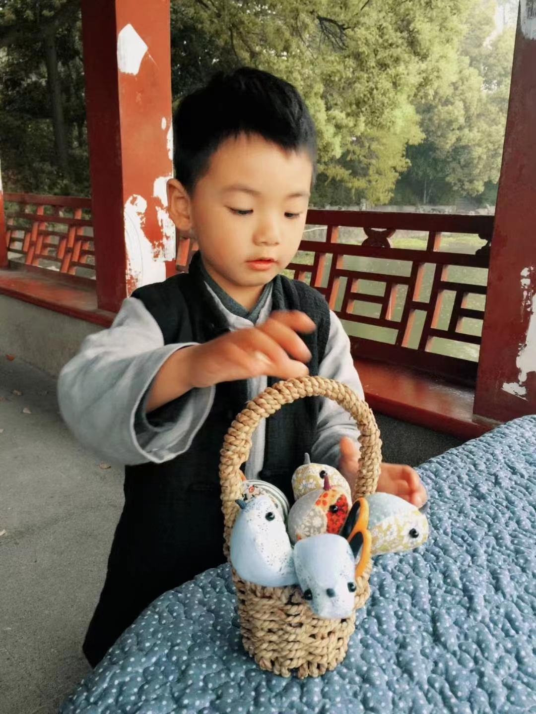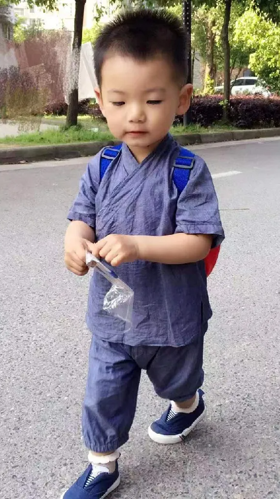 2014年,儿子出生。像所有的妈妈一样,清儿也想给孩子提供最好的爱。她喜欢棉麻的衣服,自然环保,透气性和透汗性好,为了让儿子穿得舒适,她尝试做棉麻童装。婴幼儿适合穿和尚服,她给儿子做了一套又一套。儿子3岁以后,身高增长,清儿给儿子做了很多套长衫,多使用盘扣,儿子穿上后,妥妥的民国风扑面而来。
