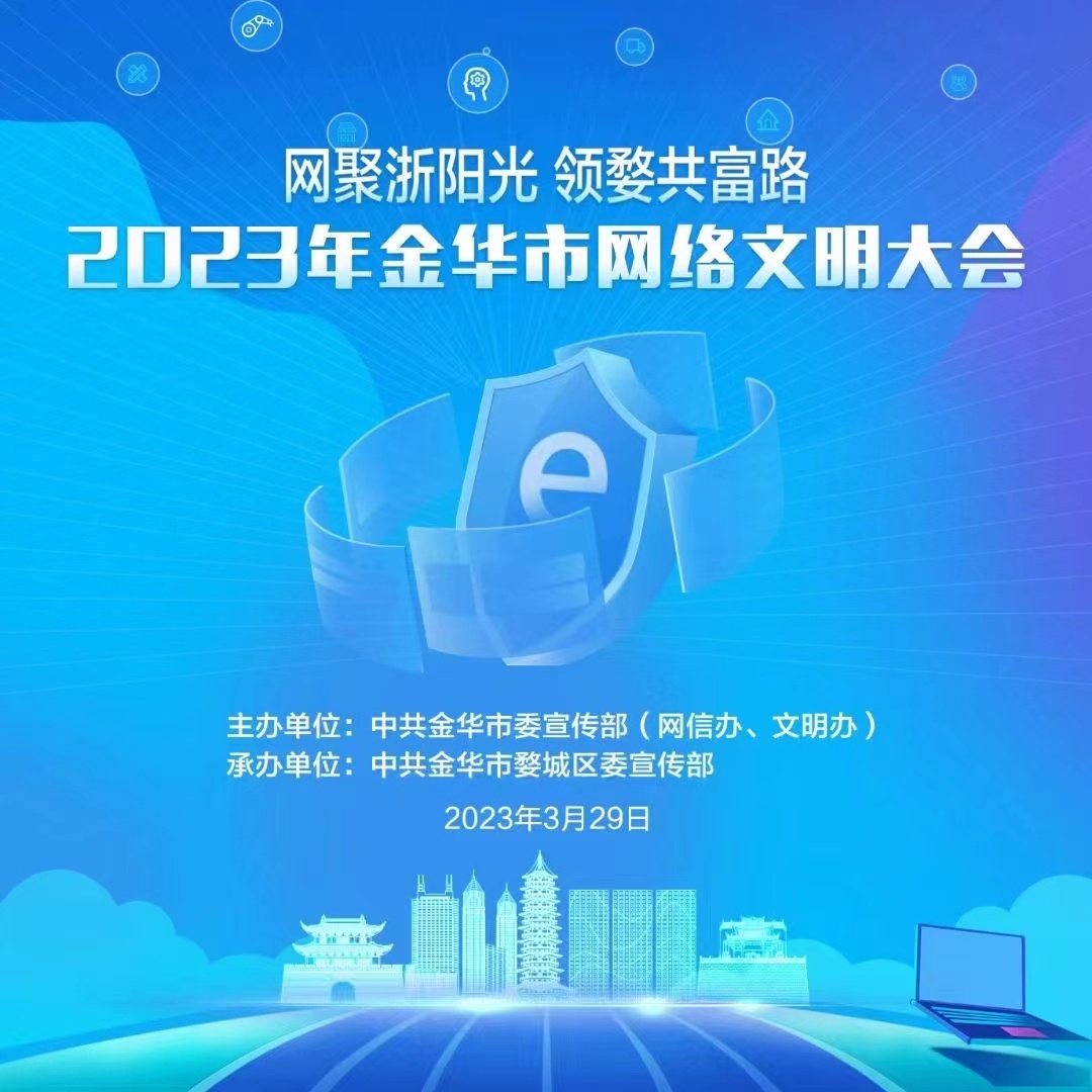 3月29日下午,2023年金华市网络文明大会召开。本届大会以“网聚浙阳光 领婺共富路”为主题,共话网络文明发展,探讨以时代新风构造清朗网络空间,推动建设网上美好共同家园。市委常委、宣传部部长吕伟强出席活动并致辞。