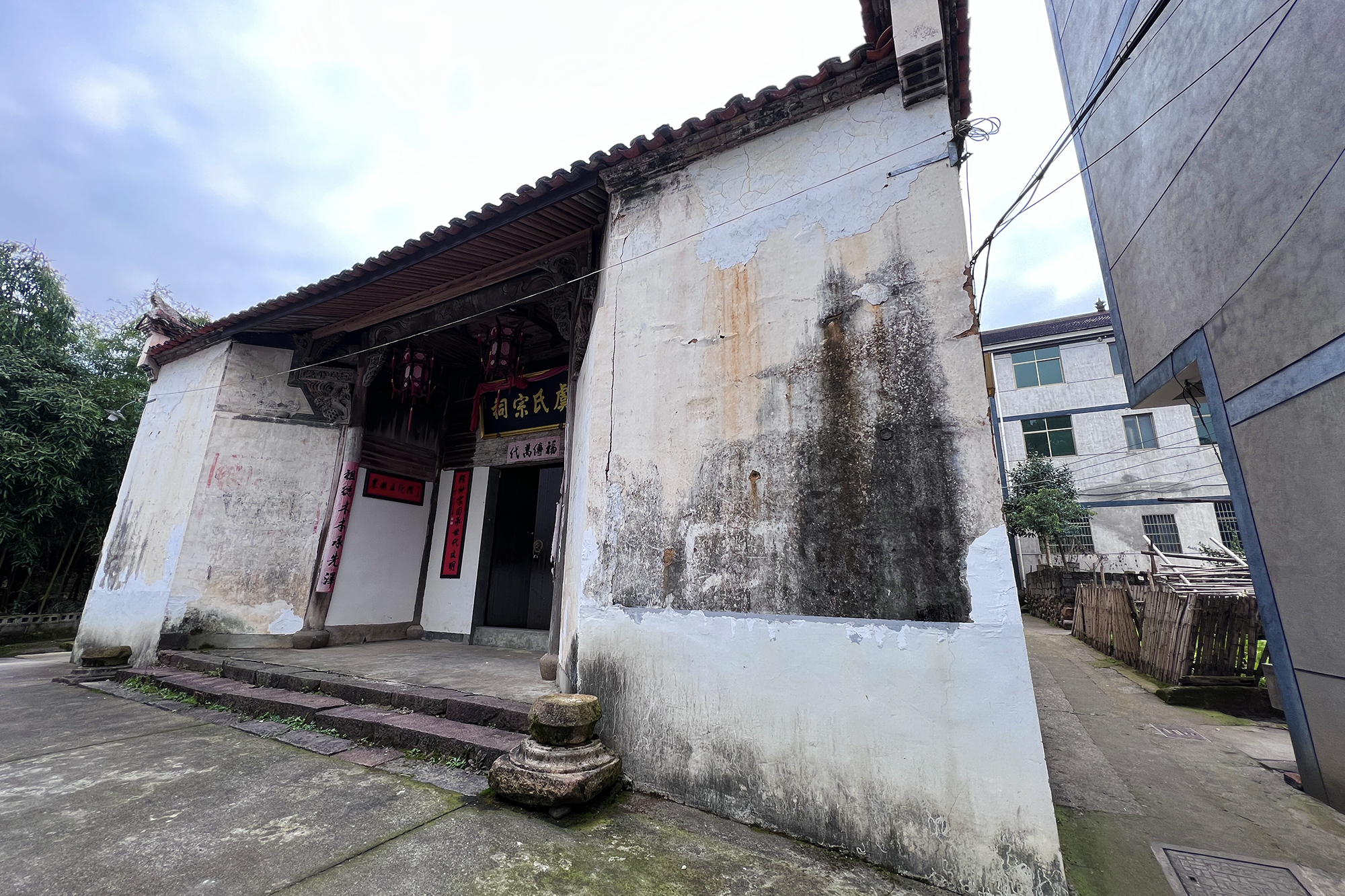 来到建于明末清初的虞氏宗祠,现在这里也是村里的文化礼堂、农耕文化馆。有别于其它地方的宗祠,门前围墙上的宣传语是用手写书法,走进里面,可以看到悬挂着一幅幅村民的书法作品,还有村民捐赠的农耕用具。