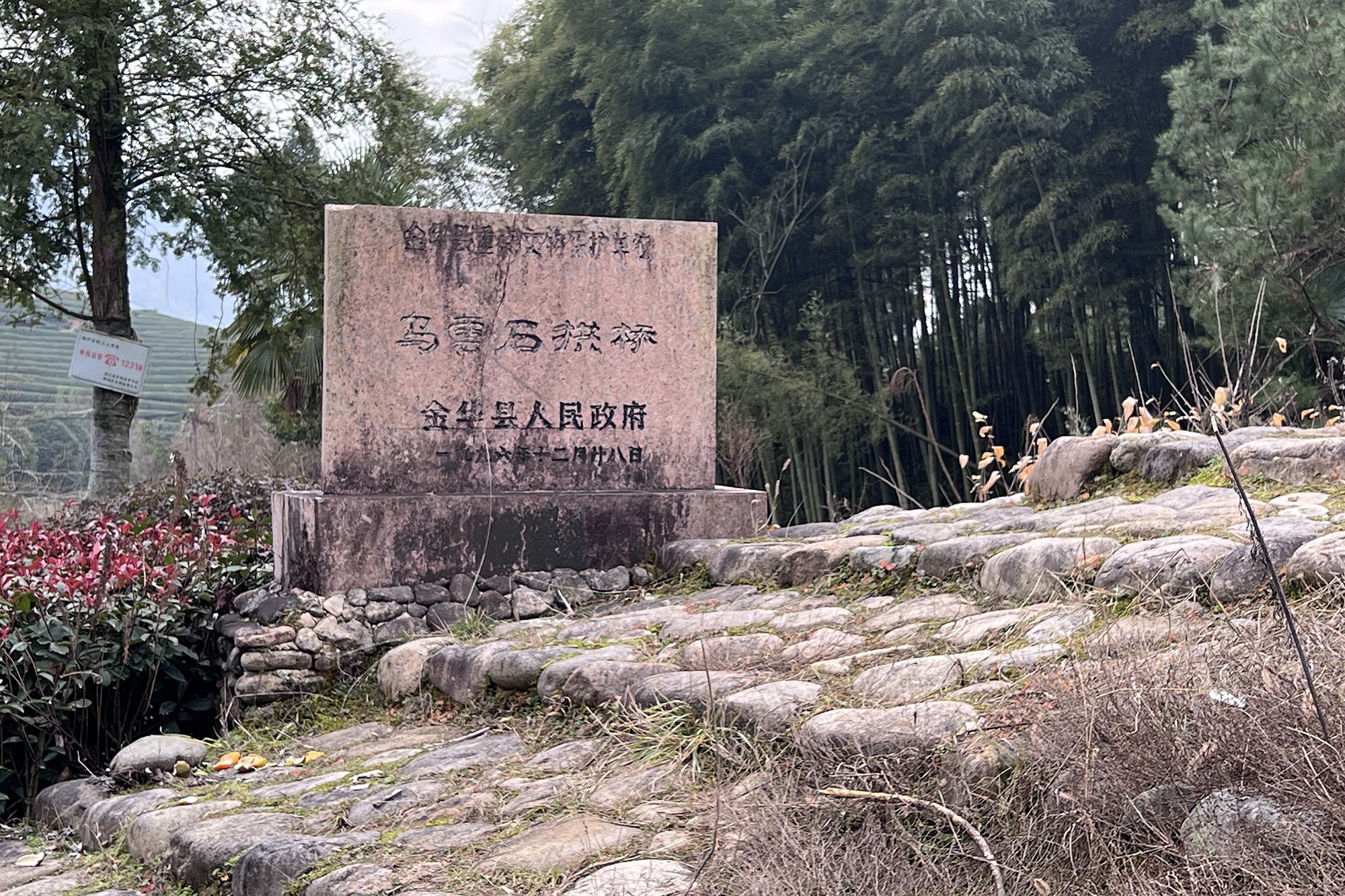 还未进村,就可以看到这座石拱桥,桥边立着一块石碑,石碑上刻有“金华县重点文物保护单位,乌云石拱桥,金华县人民政府”的字样。随着日晒雨淋,石刻上的字略显模糊。