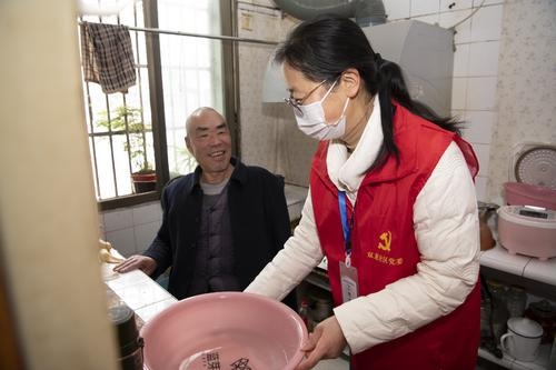 1月11日,婺城区城西街道双龙社区党员志愿者来到独居残疾人章师傅家里,拖地板、擦洗桌椅、厨房台板、家具,把居室打扫得干干净净迎接新春佳节。