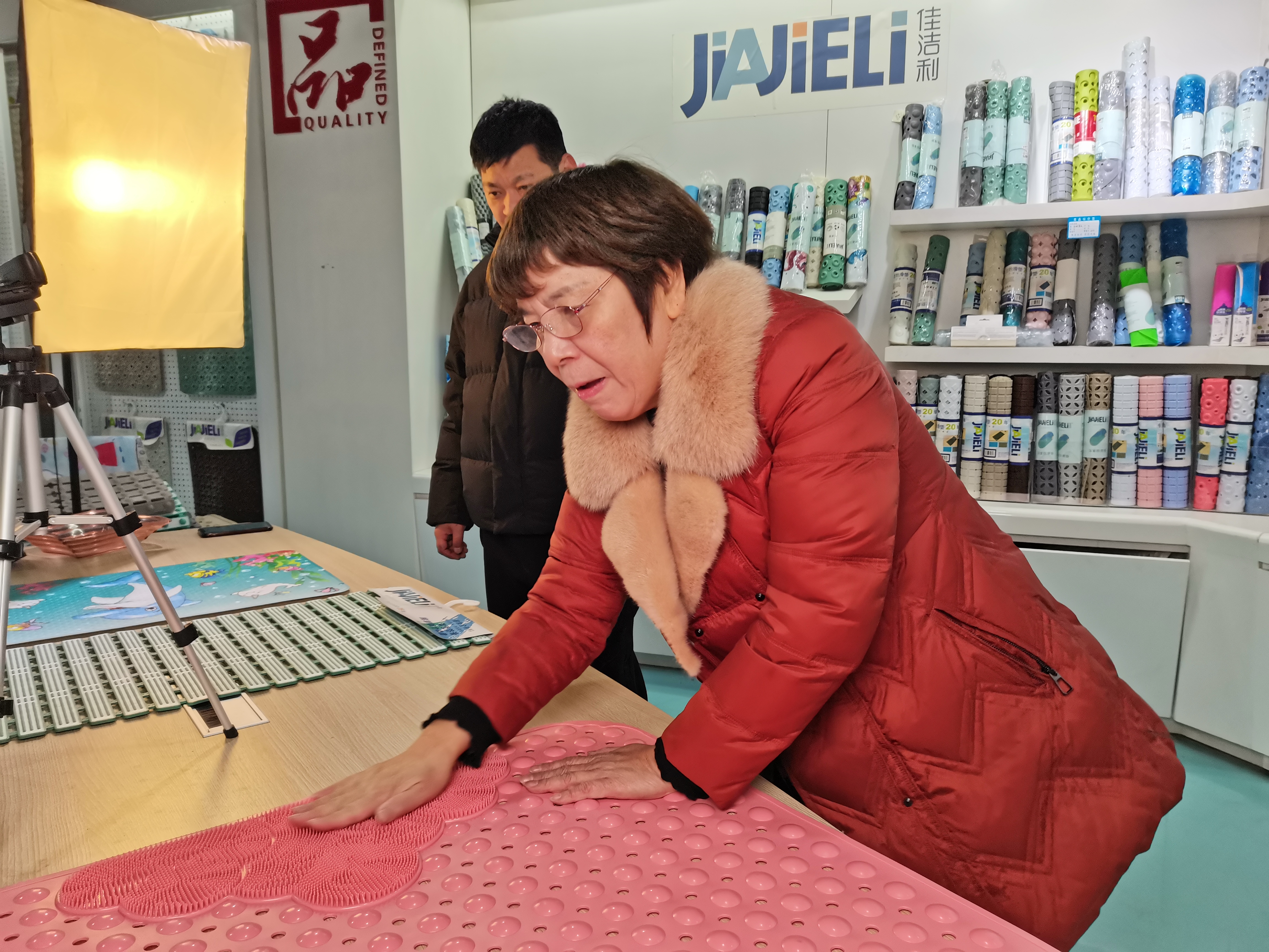 据了解,位处义乌廿三里工业园区的浙江佳洁塑胶有限公司,是一家全国生产规模最大、品类最齐全的浴室防滑垫专业生产企业,防滑垫年产量1500余万片,产品销往世界各地。年初的“开门红”订单,已排到今年6月初。