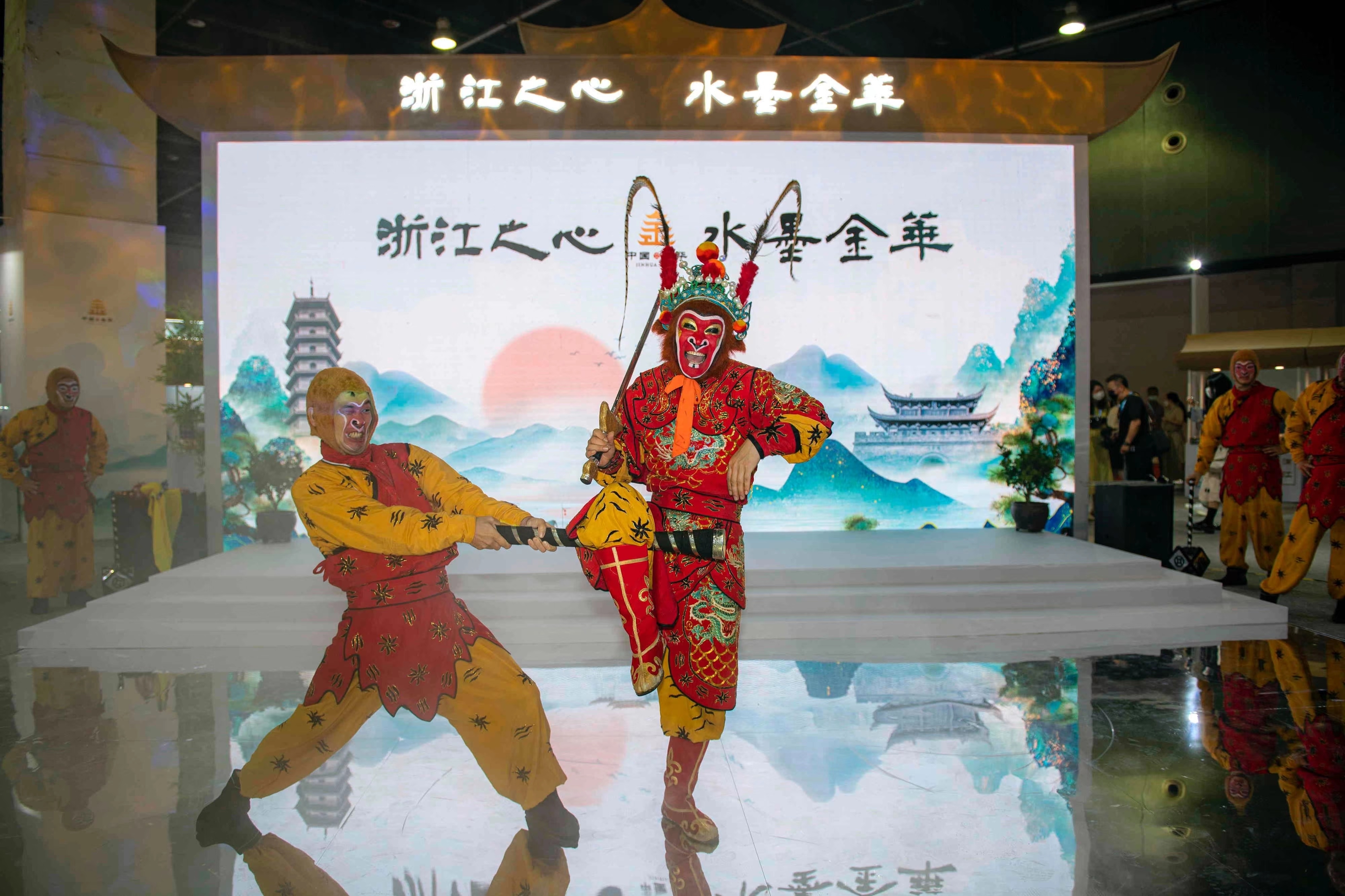 其中,诗画浙江馆突出了高质量发展、共同富裕等主题,通过杭州、宁波、金华等11地市文旅消费产品展卖、文旅活动展演等内容,呈现给观众浙江最具特色、最有魅力的文旅产品。