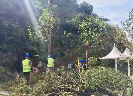 “变压器被倾倒的树木压住”“5号杆被藤蔓缠绕”“1 号杆附近成片树林被风吹倒,压住导线”……问题接连不断被查出,被风刮倒的树木压断导线和变压器,是最普遍的问题;而相当棘手的,则是220千伏变电站里的管型母线被台风吹落,支柱瓷瓶及软母线设备夹断裂。