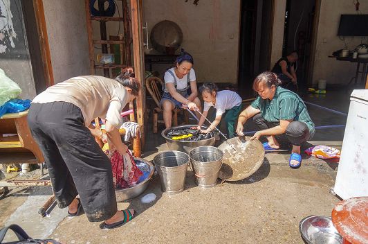 溪滩边村民在埋头清洗,红红绿绿的衣被晾满栏杆……昨天,当记者沿着山坡走进山早村时,一路上随处可见当地村民和穿着制服的救援人员忙着清理房屋。“今天我们有100多人到村里,今天都要清理好,疾控医疗卫生队才能跟上。”遇上永嘉县民兵应急分队队长董献亮时,他刚在83岁的老人戴美娇家忙活完,院子里晾满了四季的衣服,柜子家具,锅碗瓢盆。干干净净的地面上,很难想象原先淤泥甚至满到脚踝处。