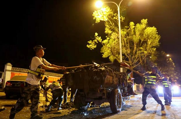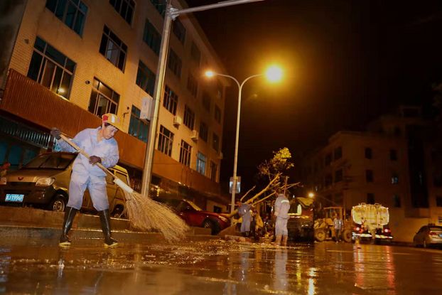 全市各方力量汇集大荆打响“垃圾大会战”!陈翔 摄为了打赢此次“垃圾大会战”,昨天晚上7点,“大荆镇灾后环境卫生整治再动员会议”在大荆镇召开,记者在会上了解到,目前有来自我市各地近3000余人集结大荆,运输车、铲车、挖机等重型设备311辆,这些清扫力量分成14个组散布在大荆各处进行清运。为了给保洁大军让出位置,当晚8点,当地派出180名警力,在各条重要道路上实施交通管制,维持现场秩序。市综合行政执法局接到乐清的援助请求后,迅速组织市、区两级环卫力量,成立了一支100人的救援队伍,包括现场调度人员、环卫保洁人员和10台大中型机械设备,于昨天上午6时集中赶赴现场,帮助受灾地区解决台风过后垃圾清运、秩序恢复的燃眉之急。截至昨晚6时,该局救援力量共清运垃圾200吨。截至昨晚7点,该镇已清理垃圾6200 车、1.44万吨,清理车辆4920辆。为了给保洁大军让出位置,当晚7点,该镇建成区实行交通管制、封闭作业,确保在第二天7点基本完成清理工作。