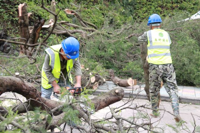 截至昨晚8点记者发稿时,园林救援队已帮助洞头当地扶正加固倾倒、半倾倒行道树156株,修剪断枝树木200余株。