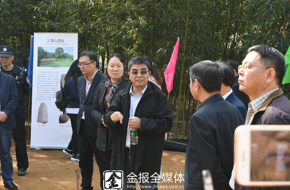 在上周五举行的浙中考古基地授牌仪式上,新发现的三潭山遗址引起了浙江省文物局副局长曹鸿、浙江省文物考古研究所副所长方向明等专家的浓厚兴趣。