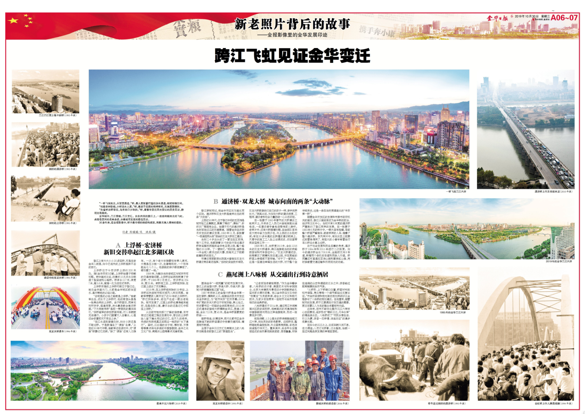 1996年5月,主桥宽28.5米、全长1316米的双龙大桥通车,跨江连接起当时的铁路西客站和汽车客运中心。“双龙大桥建成后,我特意买了辆摩托车改道上班,开在宽敞的桥面上幸福感不言而喻。”对于丁一蜚来说,这是一座通往幸福生活的大桥,对于整个金华城来说,这是一条在当时贯通南北的“华东第一桥”。