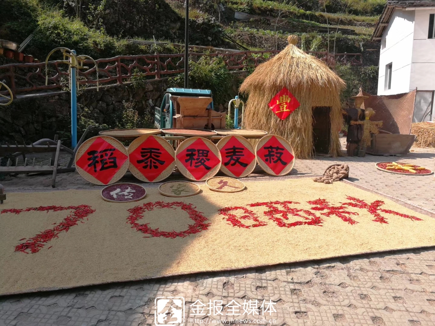 红的、黄的、金的……放眼望去,整个村子色彩斑斓,处处洋溢着丰收的喜悦。由五颜六色农作物组成的图案,也与传统民居相映成趣,一幅浑然天成的美丽乡村画卷,吸引着游客纷至沓来。