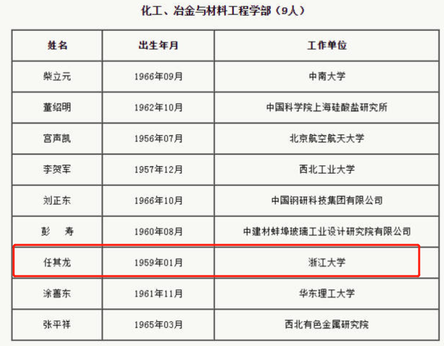 据了解,2019年中国科学院共选举产生64名院士和20名外籍院士,中国工程院共选举产生75名院士和29名外籍院士。中国科学院共分6个学部,中国工程院共分9个学部。任其龙属于化工、冶金与材料工程学部,陈薇属于医药卫生学部。