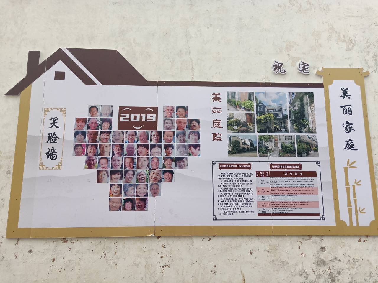 同时,“美丽家庭”创建还与环境整治相结合。在环境整治百日攻坚行动中,“笑脸墙”是“八有八无”标准中的一项重要内容。为更好地宣传美丽家庭,每个村都在显著位置绘制了美丽家庭笑脸墙,各村当年获评的美丽家庭户都会拍照上墙表彰,从而提升“美丽家庭”的荣誉感,提高村民参与环境整治和“美丽家庭”创建的热情。
