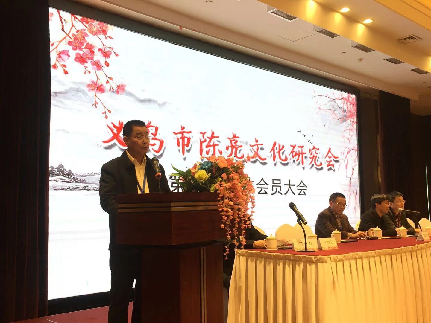 受聘为研究会名誉会长的省政协原秘书长陈荣高是陈亮的第26代裔孙,也是义乌市陈亮文化研究会发起人。会上,陈荣高勉励研究会不断拓展研究思想和领域,并将陈亮文化与新时代精神相结合,为义乌发展提供精神动力与思想渊源。他认为,在高水建设世界“小商品之都”的新形势新要求下,探讨怎样来研究陈亮文化,如何更好地纪念、传承陈亮爱国精神,让他的思想精髓重绽光彩、为今所用,具有特殊的时代意义。