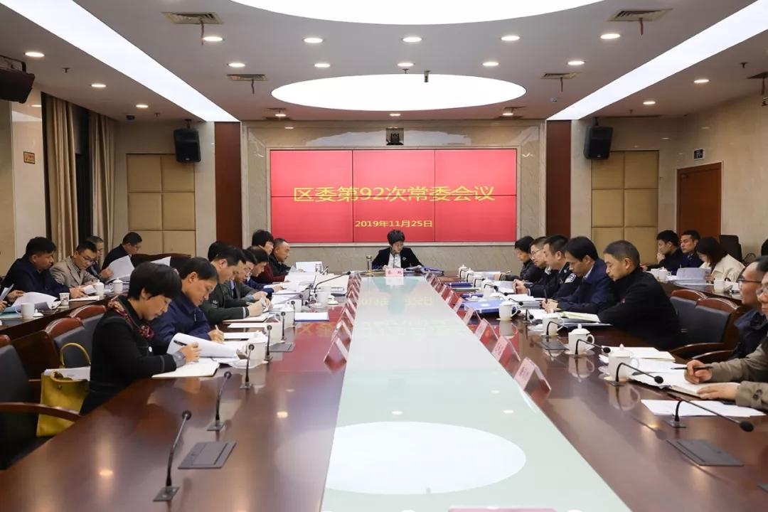 11月25日晚,婺城区委书记蔡艳主持召开区委第92次常委会会议,宣讲十九届四中全会精神,第一时间传达学习省委十四届六次(全体)扩大会议精神,研究部署下步贯彻落实工作。区领导杨寿根、徐妙芳、王建中、苏荣兵、杜建明、黄斌、潘国东、陈旭辉、贾恒飞、杨旭锋等参加会议。区人大常委会主任朱利群、区政协主席张茹先列席会议。