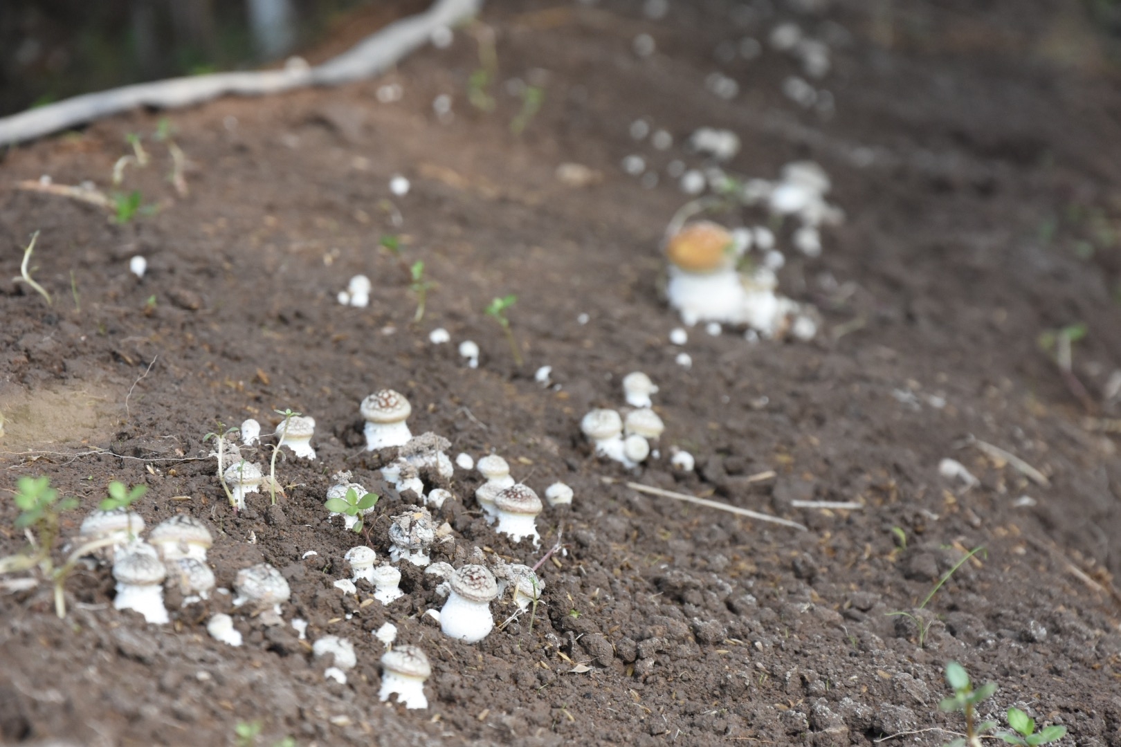 葡萄大棚里不仅有适合赤松茸的生长环境,修剪下的葡萄枝条在粉碎后行能成为食用菌的良好原料。现在,方志军还探索不同秸秆配方对产量的影响,今年除了单独使用葡萄枝条碎粉作为栽培大球盖菇的原材料,他还尝试了混合葡萄枝条碎粉和其他农作物秸秆。