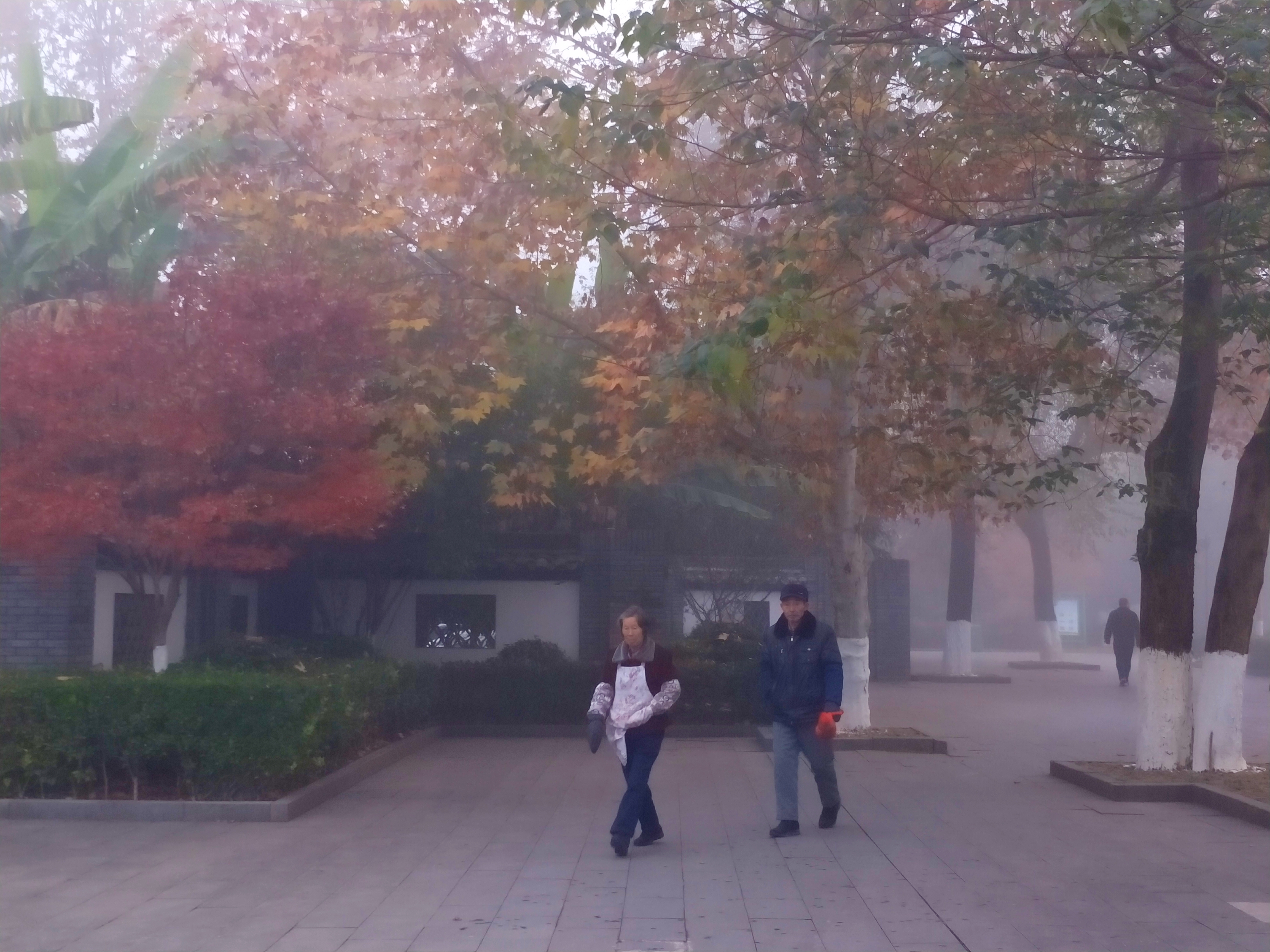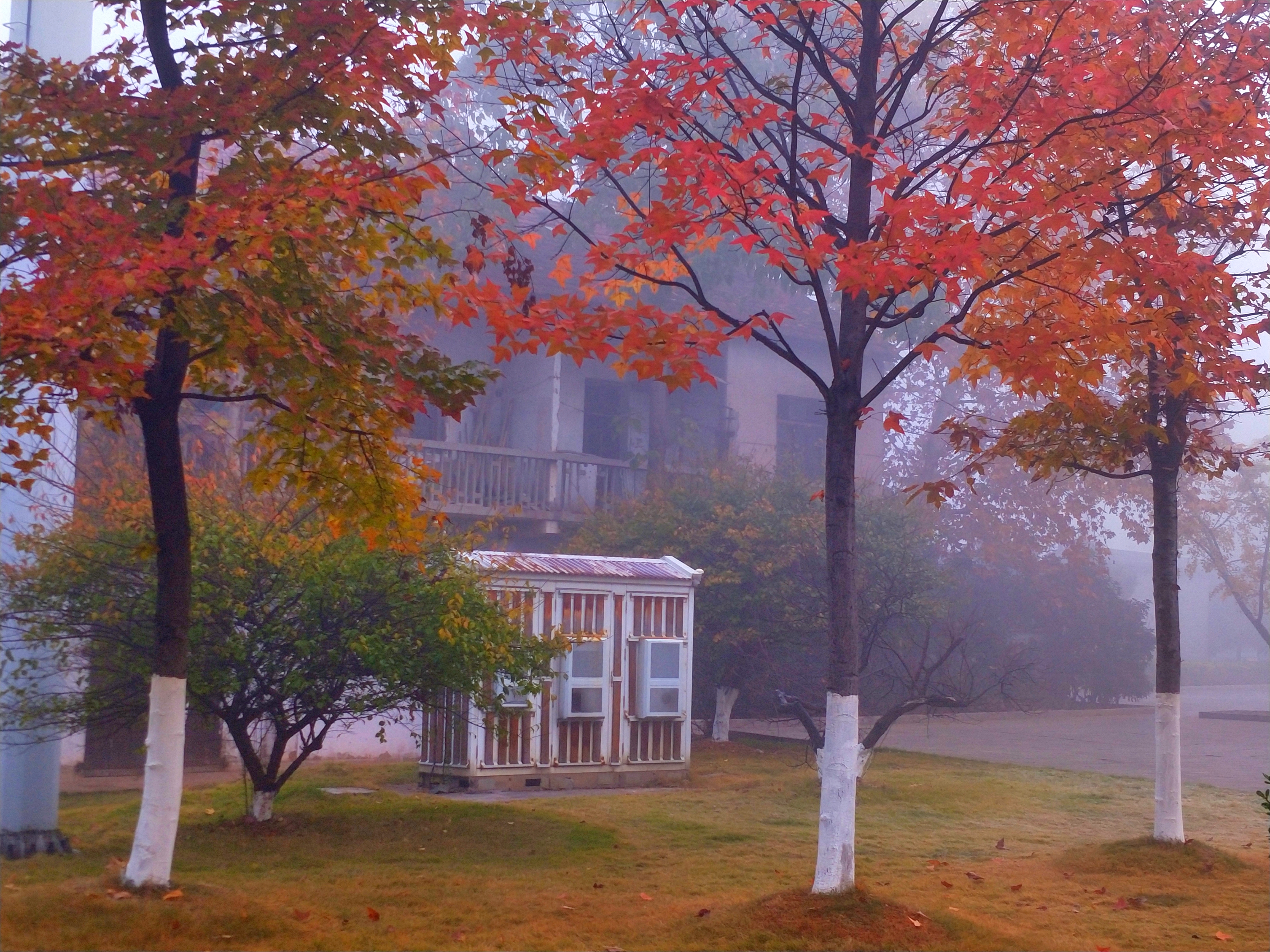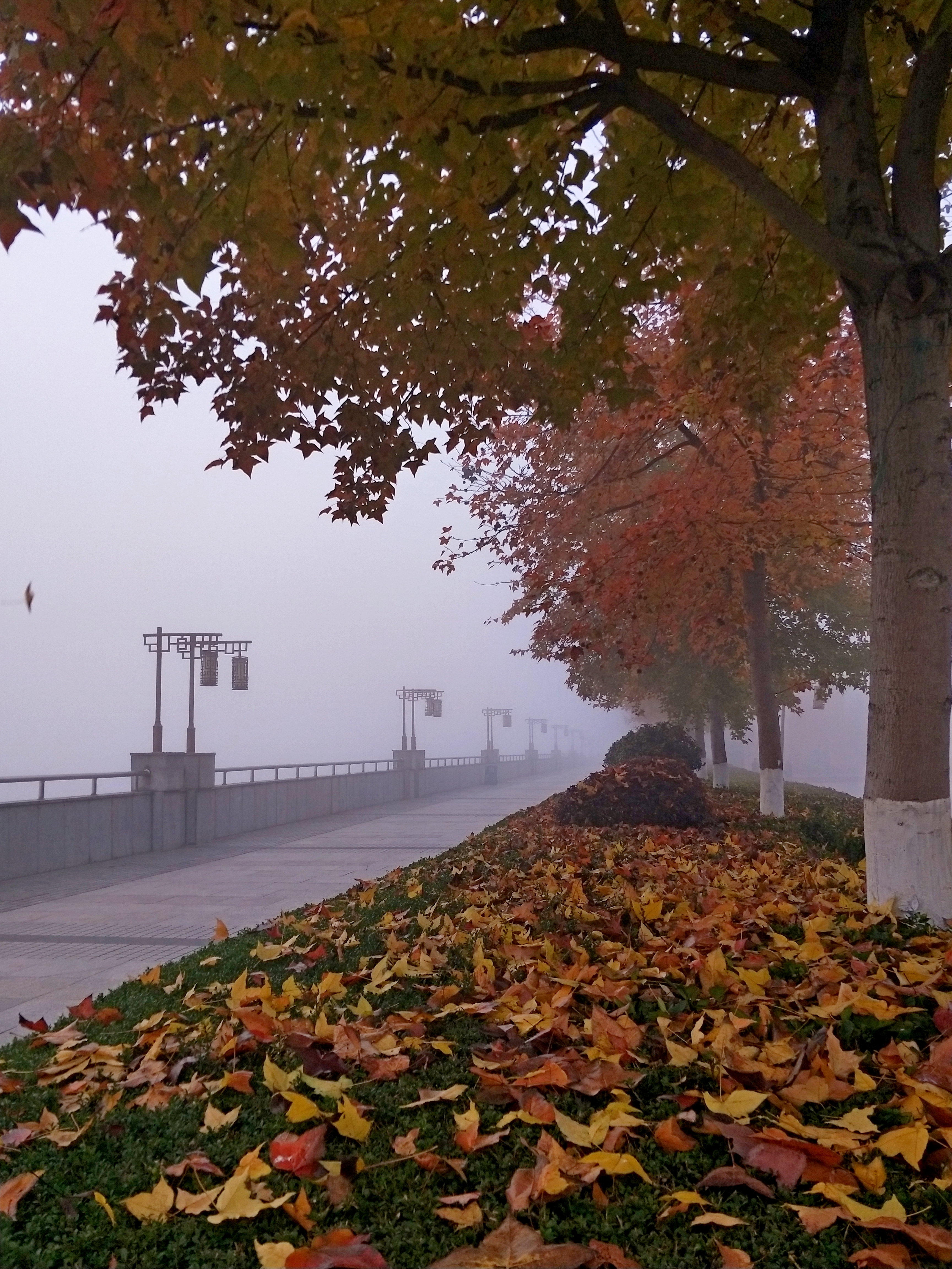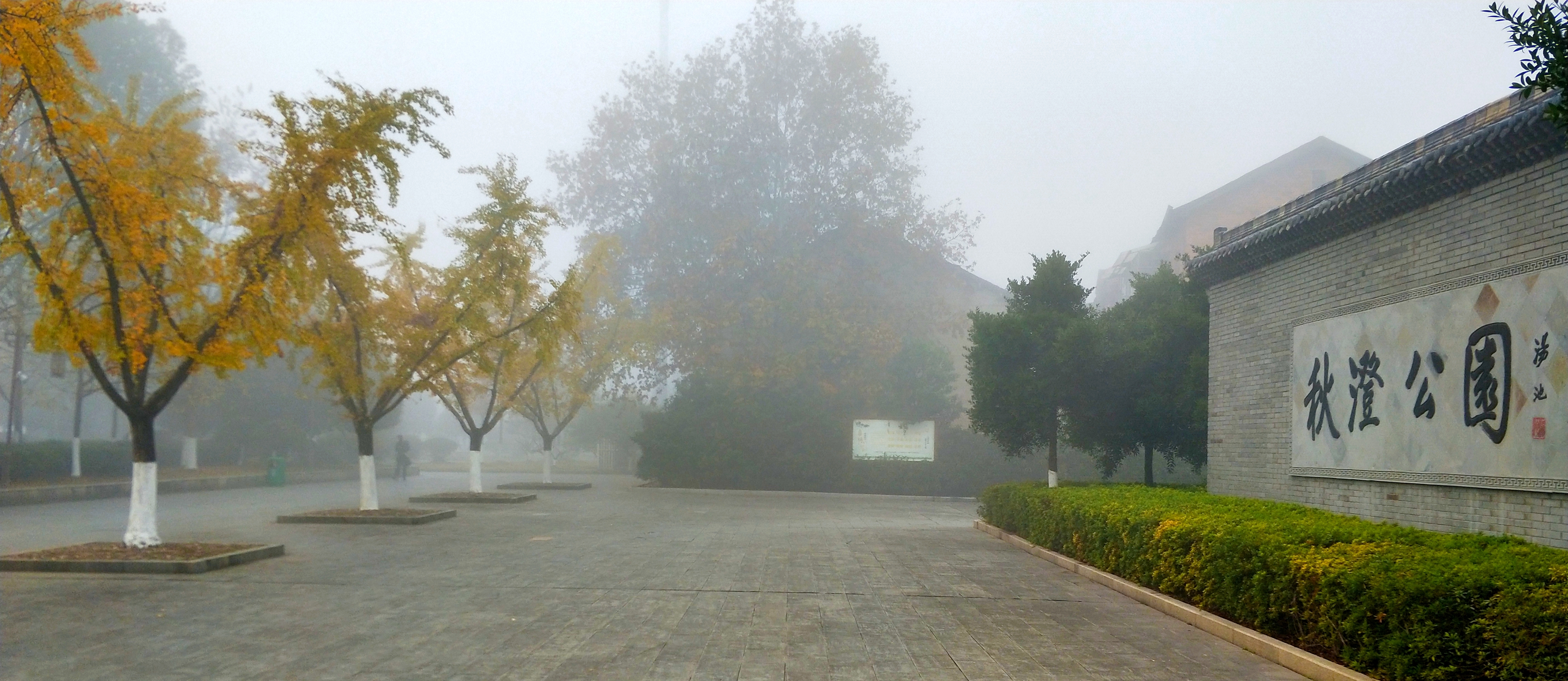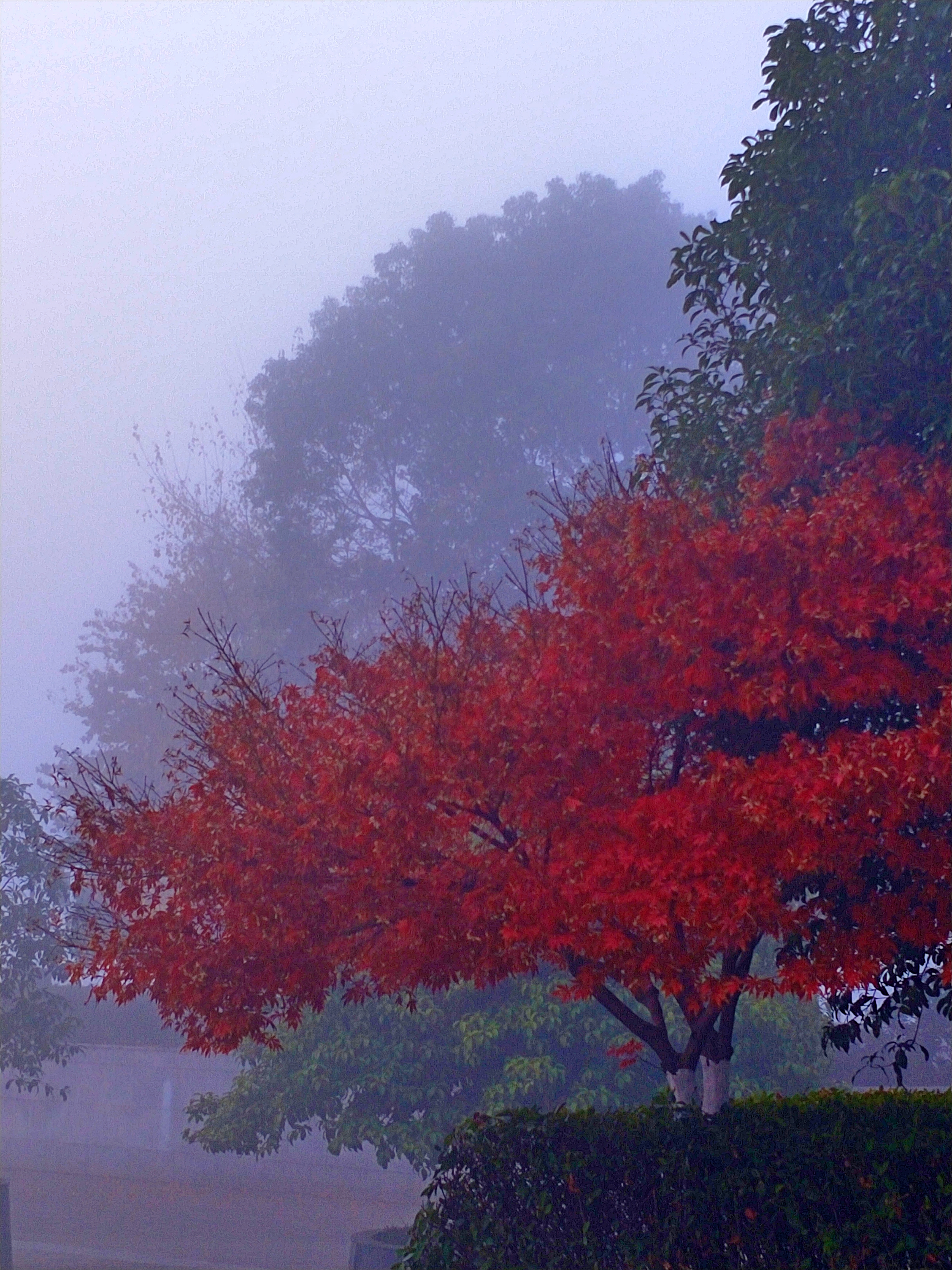 武义秋澄公园位于武义县城偏东,总面积8.24万平方米(其中绿地面积约7万平方米),呈长条形,总长1510米,南面面临武义母亲河——熟溪即沿熟溪北岸而建,因古句“熟水秋澄”而得名。眼下正值初冬时节,整个公园正如被上帝打翻了的调色板,大量的银杏、枫香、桂花、樟树、鸡爪槭等,一排排、一丛丛、一株株,红的像火、黄的似金、橙的如桔、绿的若玉,在晨雾中若隐若现,犹如七彩油画,恰似梦中仙境,美不胜收。