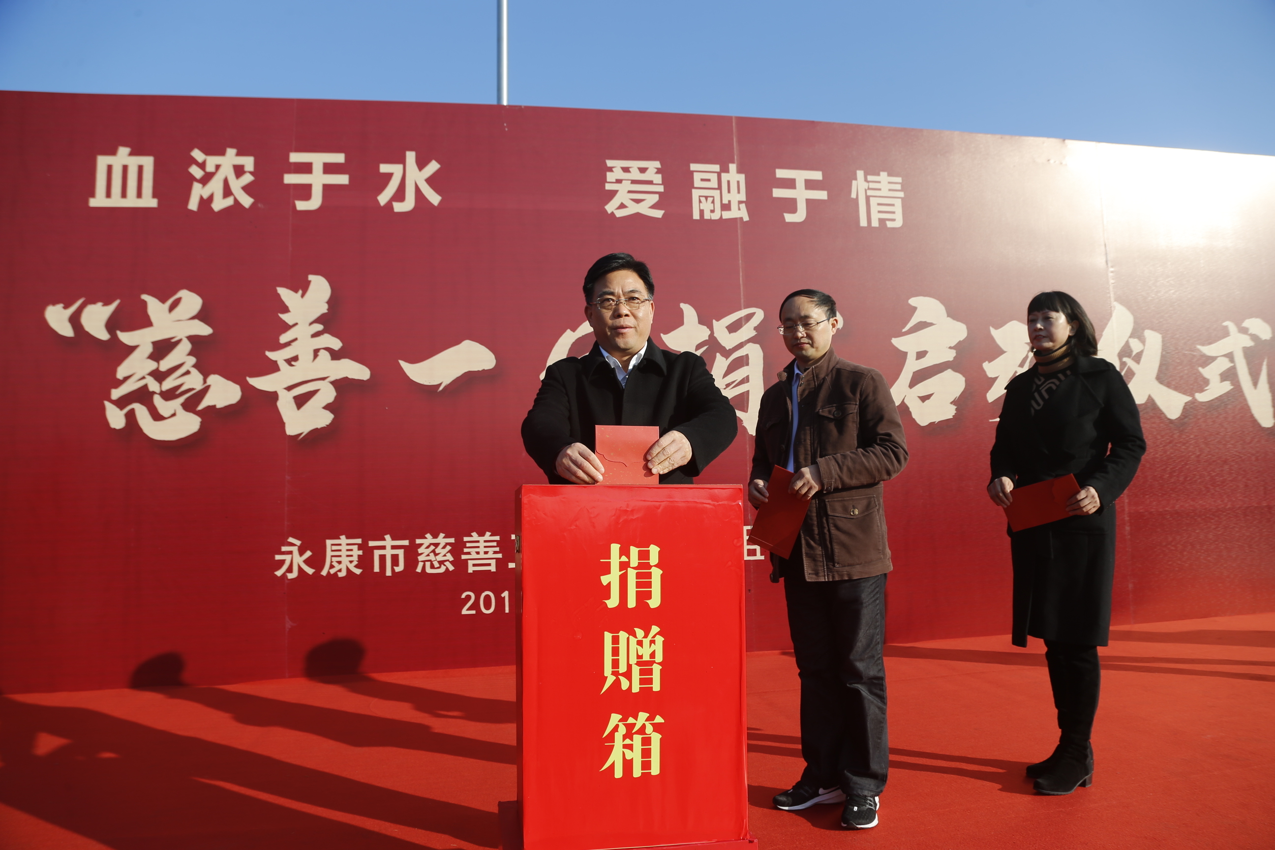 金政、张群环、陈美蓉、朱世道、胡积合等永康四套班子领导参加活动并带头捐款。永康市慈善总会会长陈毅成在仪式上宣读了《“慈善一日捐”倡议书》。永康市机关各部门、各镇(街道、区)负责人,以及爱心企业代表、公益组织志愿者参加活动。