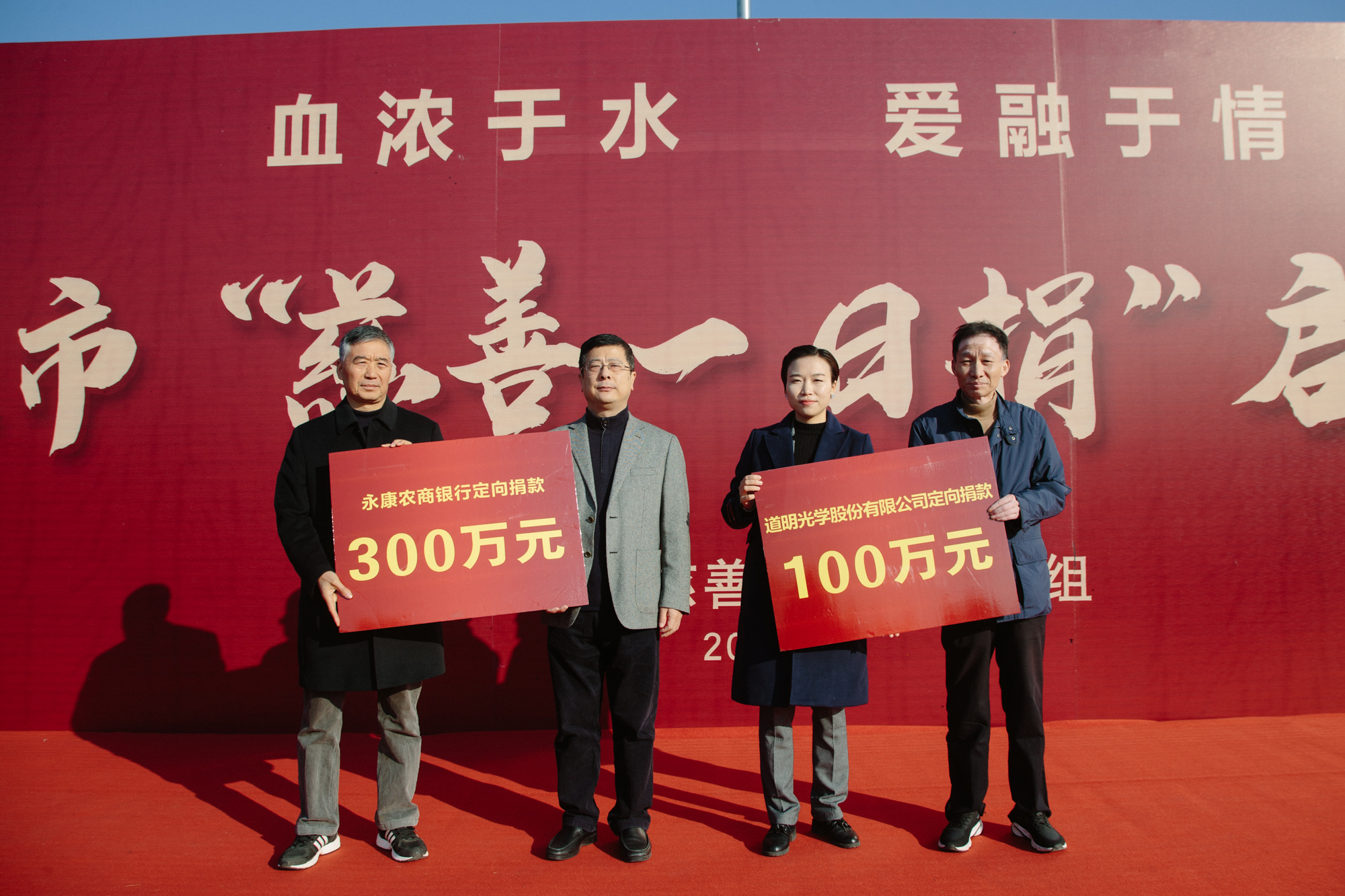 当天的启动仪式共筹集了来自全市各单位、企业和个人的共计550多万元的善款。此外,永康农商银行和道明光学股份有限公司分别出资300万元、100万元进行了定向捐款。