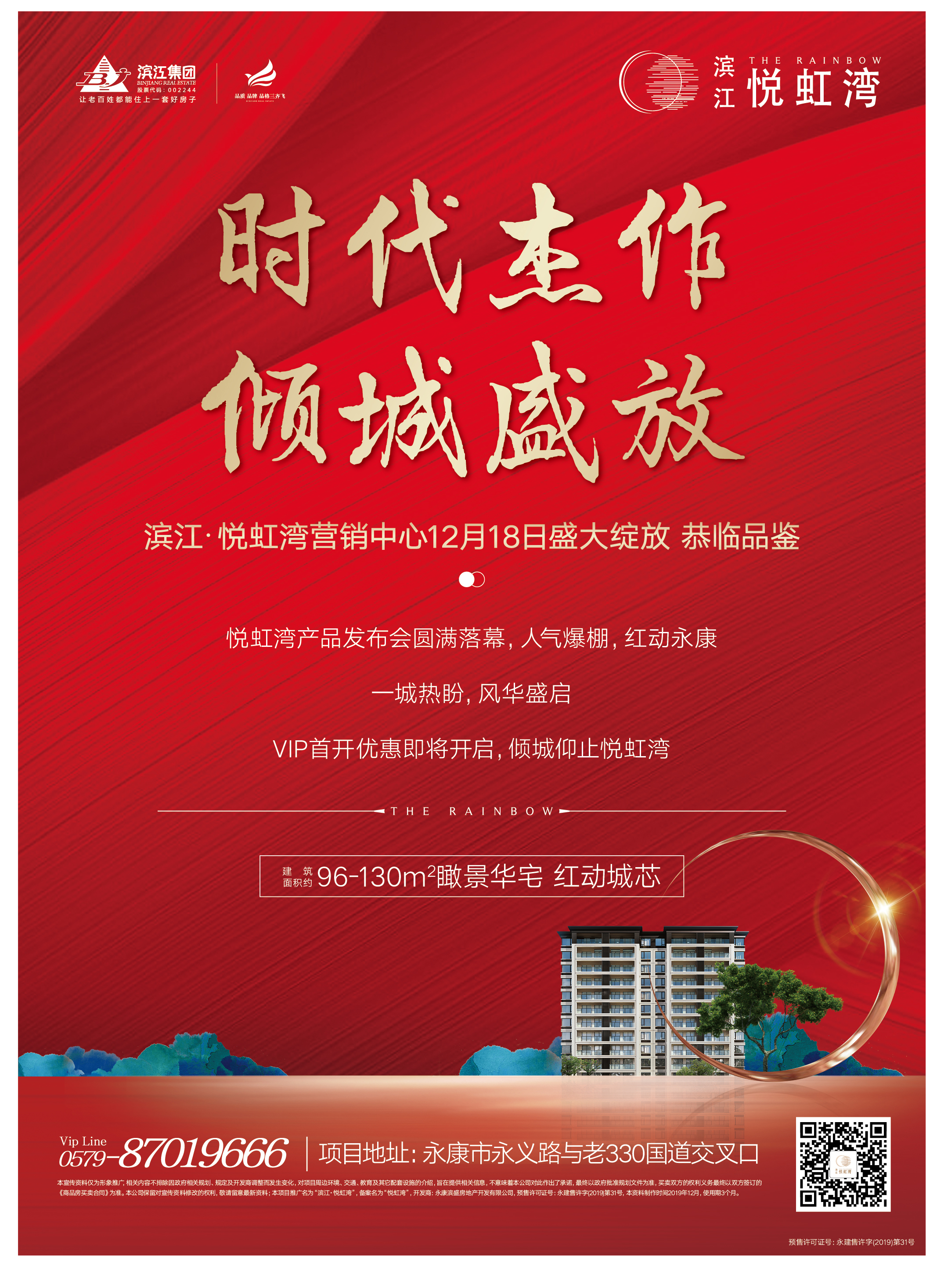 12月18日,永康楼市将迎来“大事件”!刚刚跨入“千亿房产俱乐部”的滨江集团将在永康推出开篇之作——“滨江·悦虹湾”展示中心正式盛大开放。璀璨的展示中心在数月雕琢之下终于揭开神秘面纱,惊艳永康,传说中的滨江系好房子到底是什么样的?高端人居到底高在哪里?一切答案都将在明天揭晓。当然,看盘的同时,全球闻名的米其林厨师也将现场献艺,为热爱美食的你送上一场饕餮盛宴。