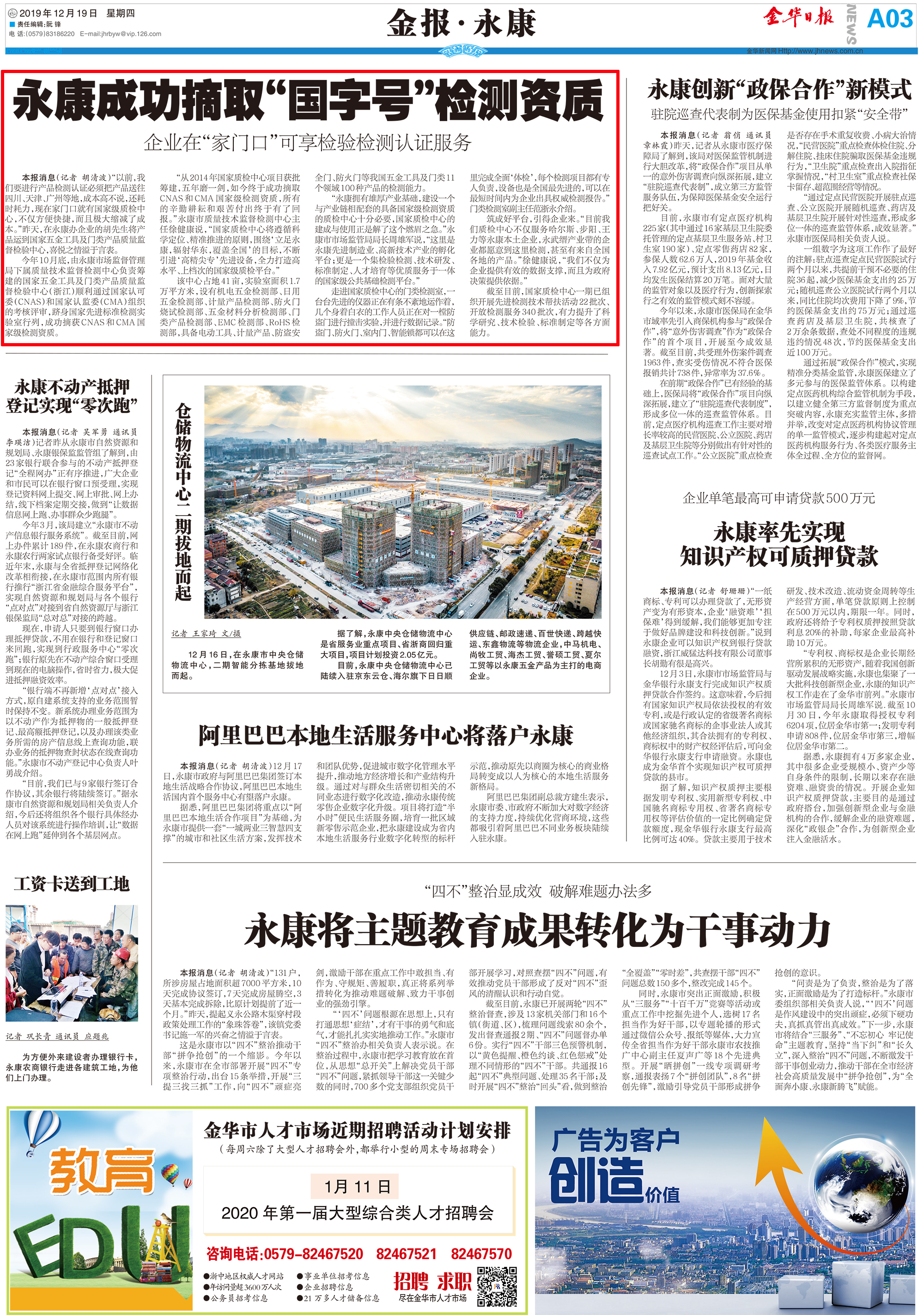 “以前,我们要进行产品检测认证必须把产品送往四川、天津、广州等地,成本高不说,还耗时耗力,现在家门口就有国家级质检中心,不仅方便快捷,而且极大缩减了成本。”昨天,在永康办企业的胡先生将产品运到国家五金工具及门类产品质量监督检验中心,喜悦之情溢于言表。