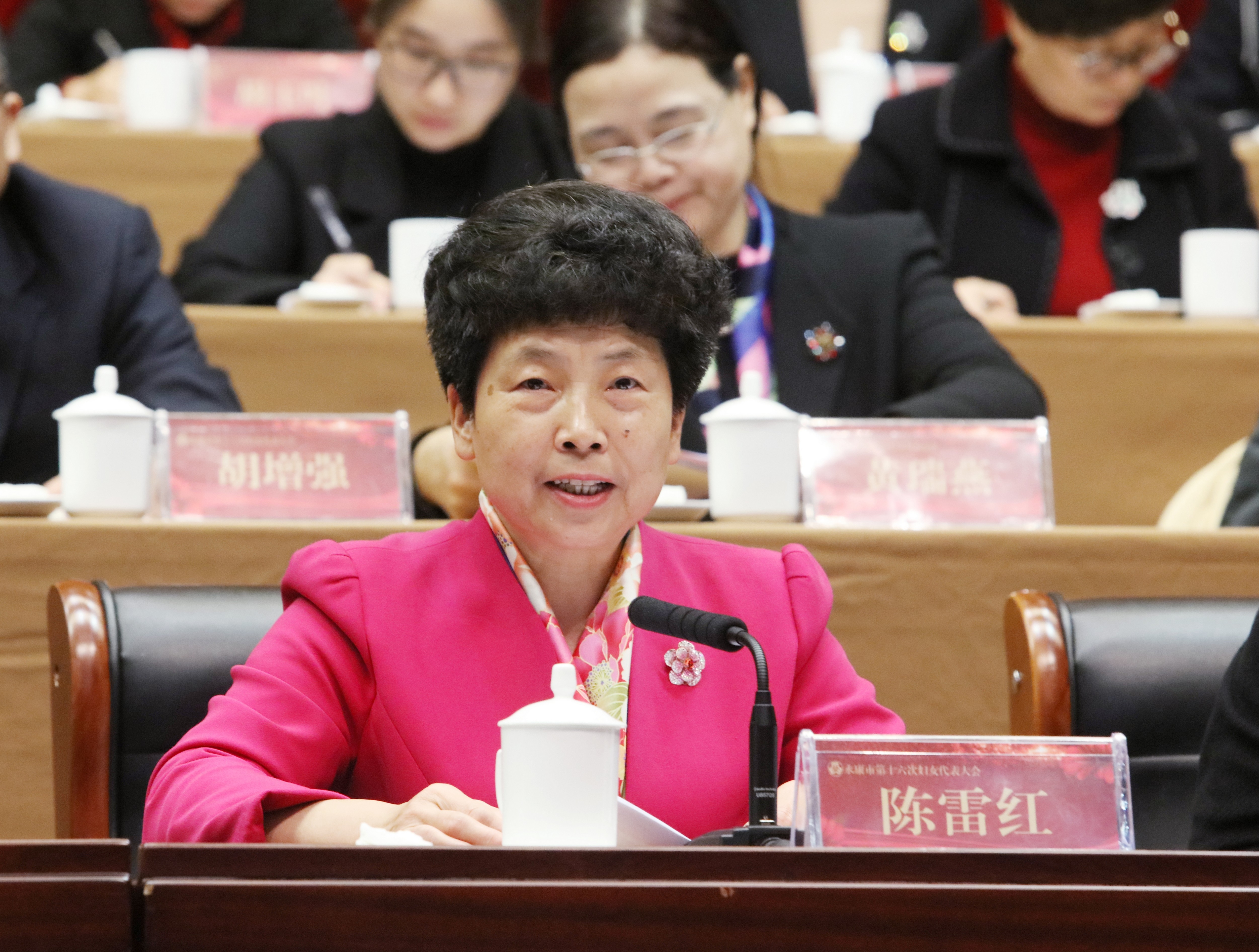 陈雷红对大会的召开表示热烈的祝贺,并表示各级妇女要旗帜鲜明强引领,坚定广大妇女听党话、跟党走的信念;要围绕大局勇担当,组织动员广大妇女建功新时代;要立足家庭树新风,充分发挥广大妇女在市域治理现代化中的独特作用;要深化改革求实效,增强妇联组织的政治性先进性群众性;要坚持男女平等基本国策,推进妇女儿童事业再上新台阶。