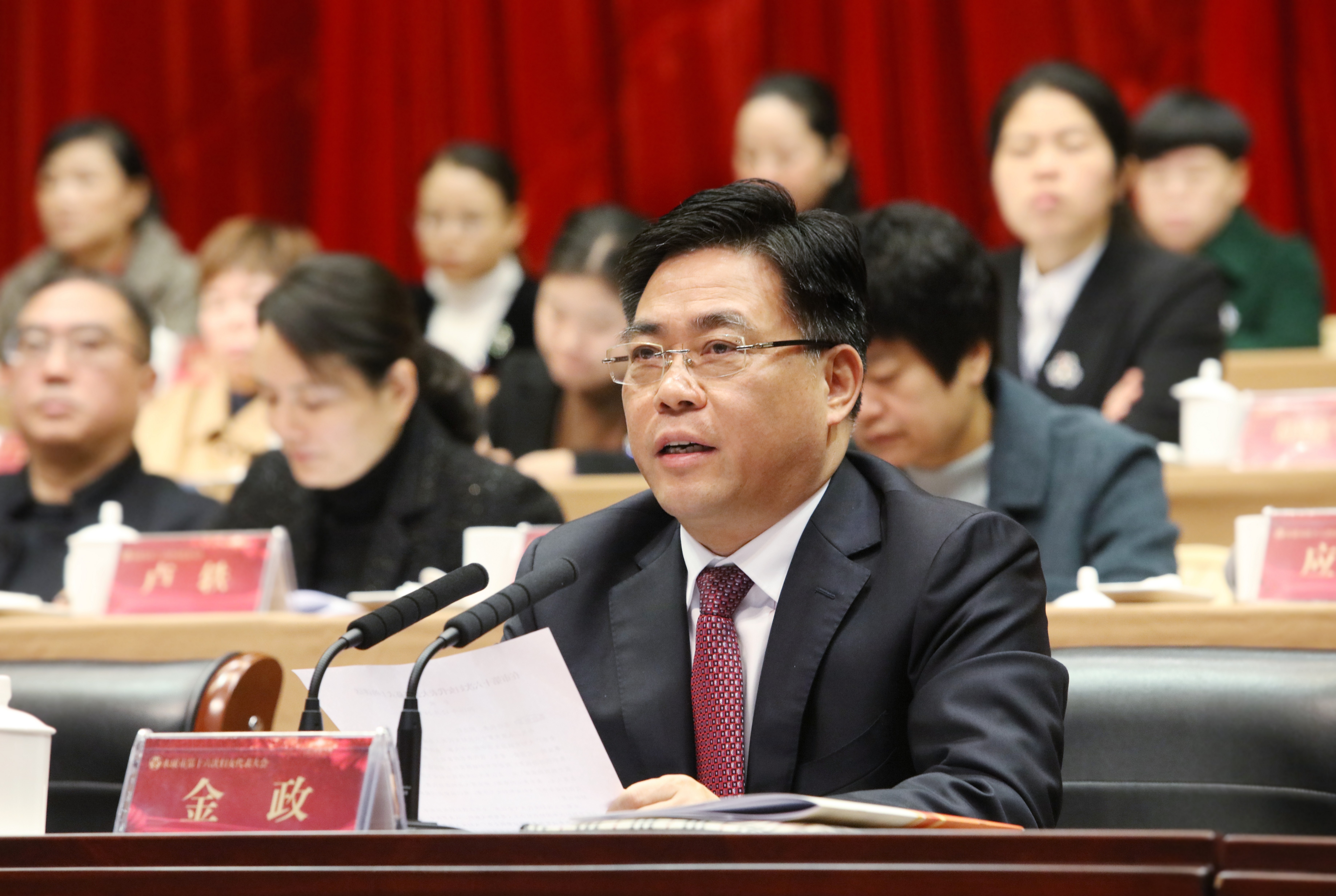 永康市委书记金政代表市四套班子向大会的召开表示热烈的祝贺,他指出,这是全市广大妇女政治生活中的一件大事,也是新时代永康妇女事业的一次盛会。永康市第十五次妇女代表大会以来,全市各级妇联组织高举习近平新时代中国特色社会主义思想伟大旗帜,认真贯彻中央和省委、市委决策部署,团结带领全市广大妇女工作者锐意进取、开拓创新,不仅在中心工作的主战场拼搏实干、奋勇争先、在创业创新的最前沿施展才华、展翅高飞,还在社会服务的第一线挥洒魅力、绽放精彩,为全市各项事业发展作出了重要贡献。