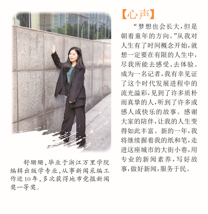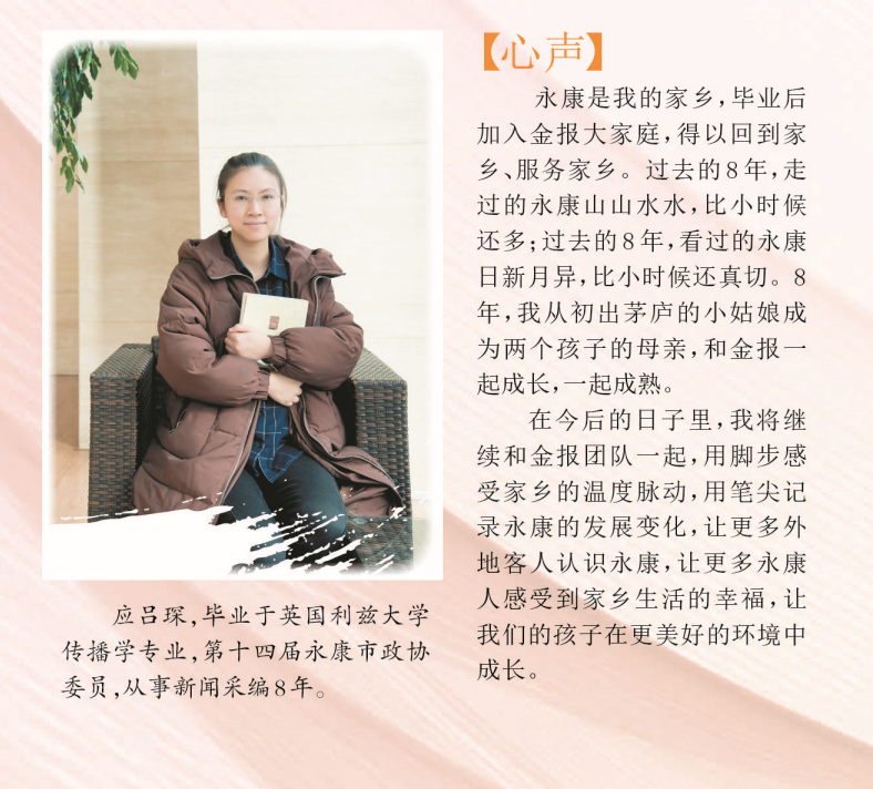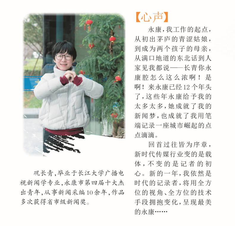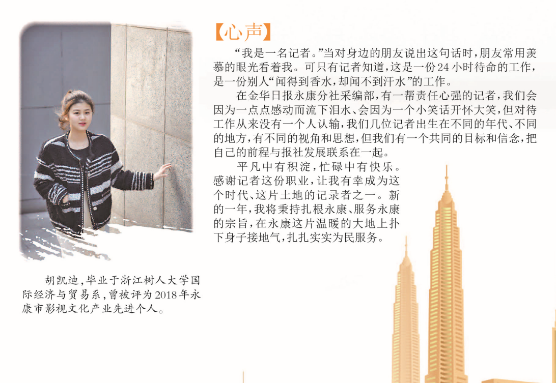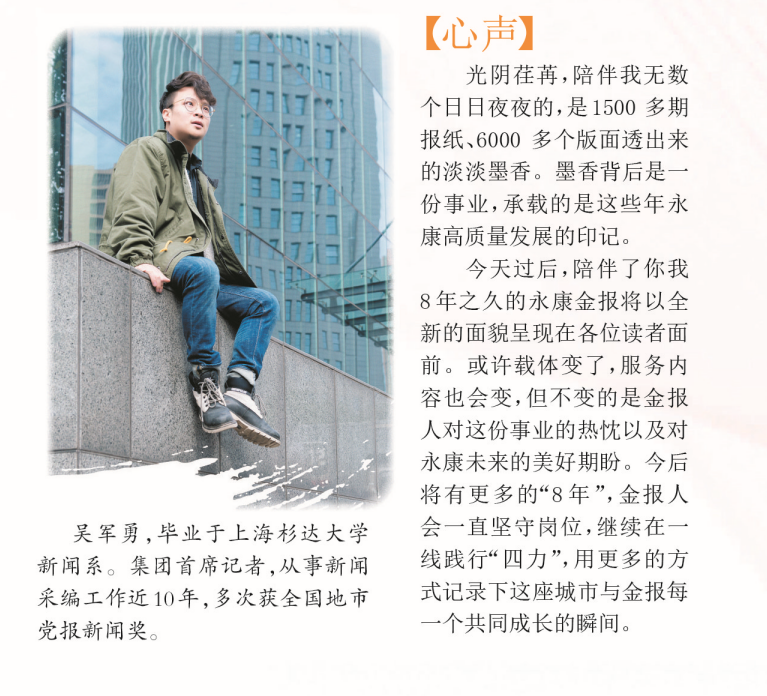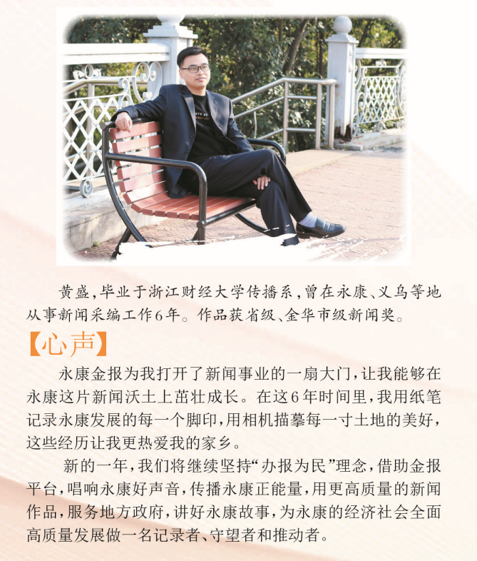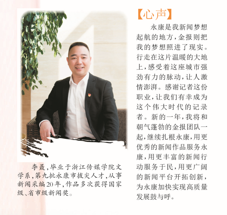 新的一年,永康分社团队将全新亮相,在金报集团党委领导下,秉承“大家办报、润泽八婺”精神,倡导继承和弘扬金报优良传统,努力在更高起点上实现高质量发展,加快打造高品质新型主流媒体,着力擦亮“百年金报”品牌。