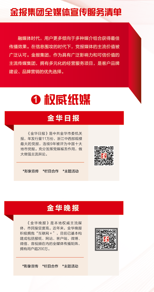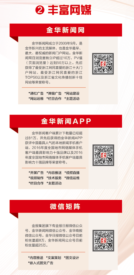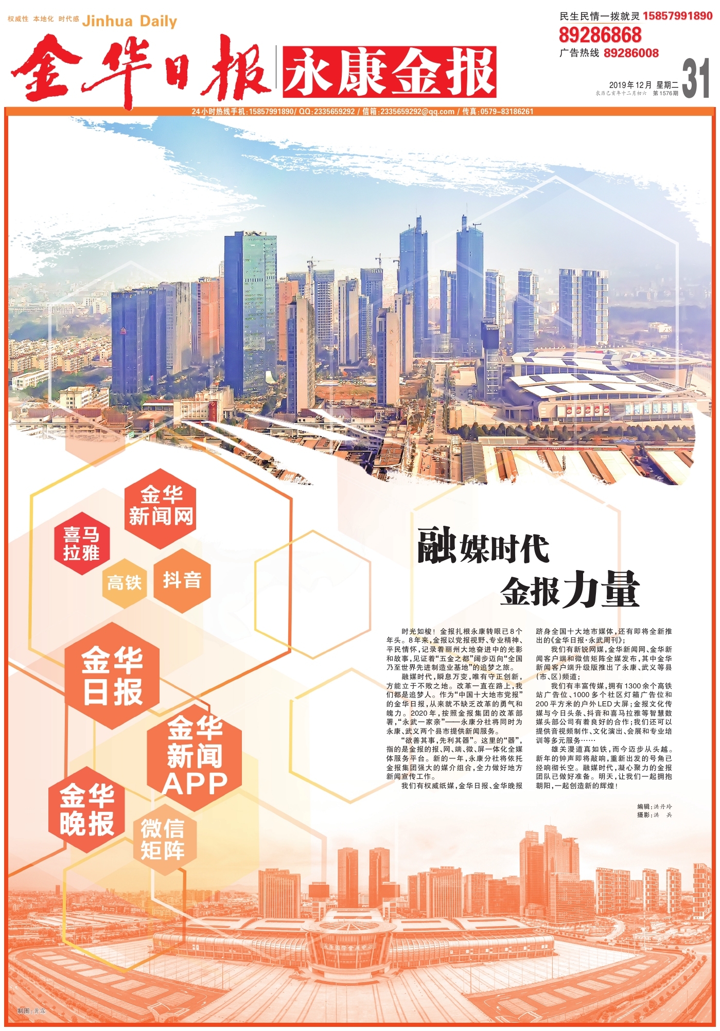 我们有权威纸媒,金华日报、金华晚报跻身全国十大地市媒体,还有即将全新推出的《金华日报·永武周刊》;