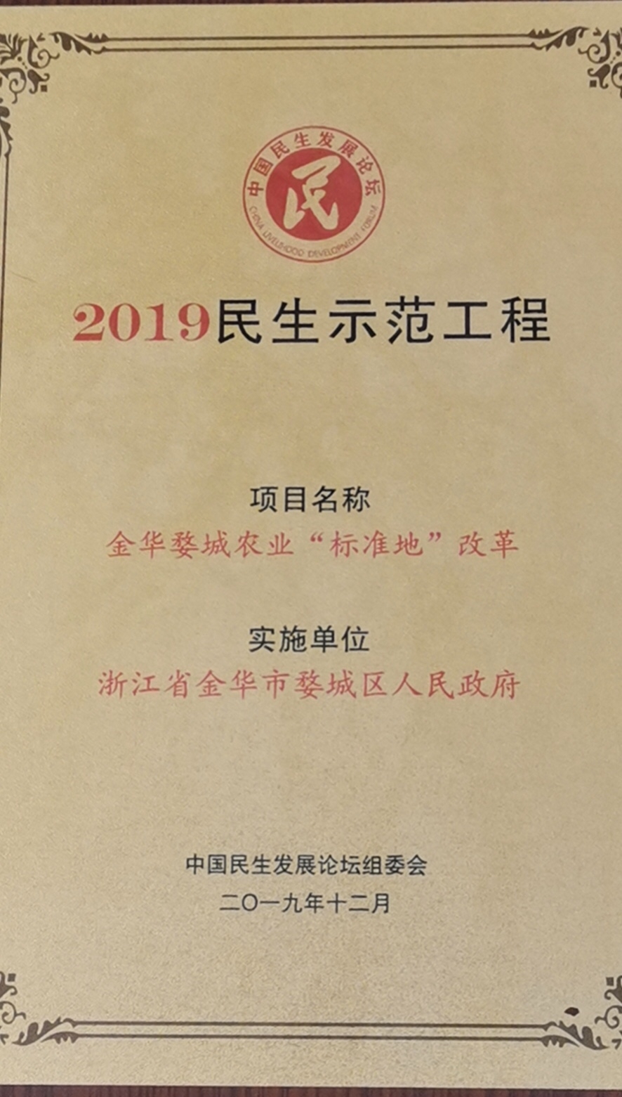 记者昨从婺城区农业农村局了解到,经中国民生发展论坛组委会实地调研、专家初审,“金华婺城农业‘标准地’改革”从全国近千项民生工程案例中脱颖而出,获评“2019年民生示范工程”。