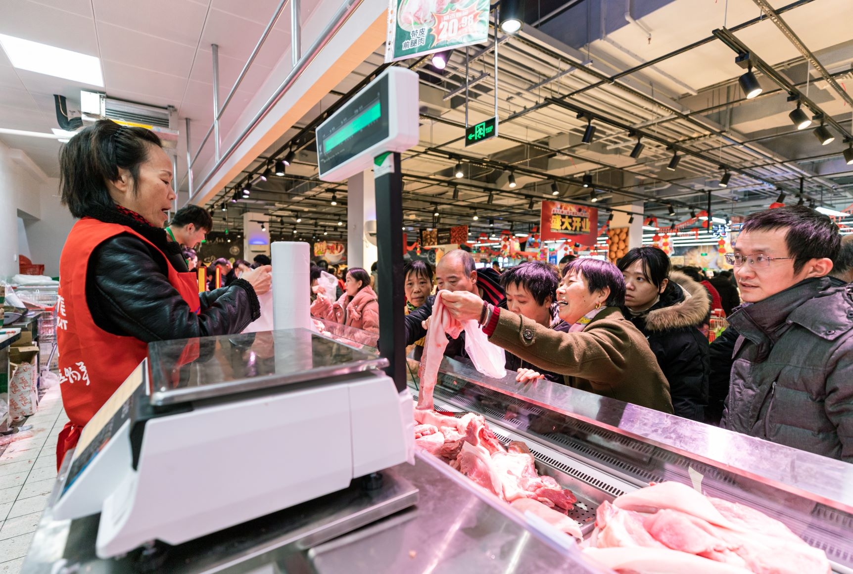 上午十点,现场已是人山人海、热闹非凡,超低的优惠使得超市内外人流络绎不绝,前来抢购的顾客将货架围得水泄不通,喜庆的气氛让大家提前感受到了年味。