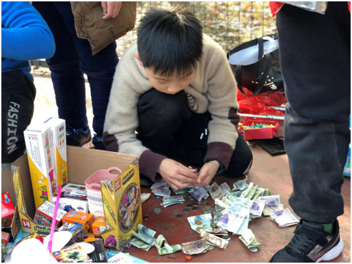 此次跳蚤市场,高年级同学为卖家。为了吸引顾客,每个班级同学自由组合,分成若干小组,小组内部分工明确,从商品选择到活动方案设计。不仅对自己的摊位进行了精心布置,还有抽奖、买一赠一、多买多送……这些富有创意的商品和优惠的价格深深地吸引了买家们的眼球,赚的“盆满钵满”。