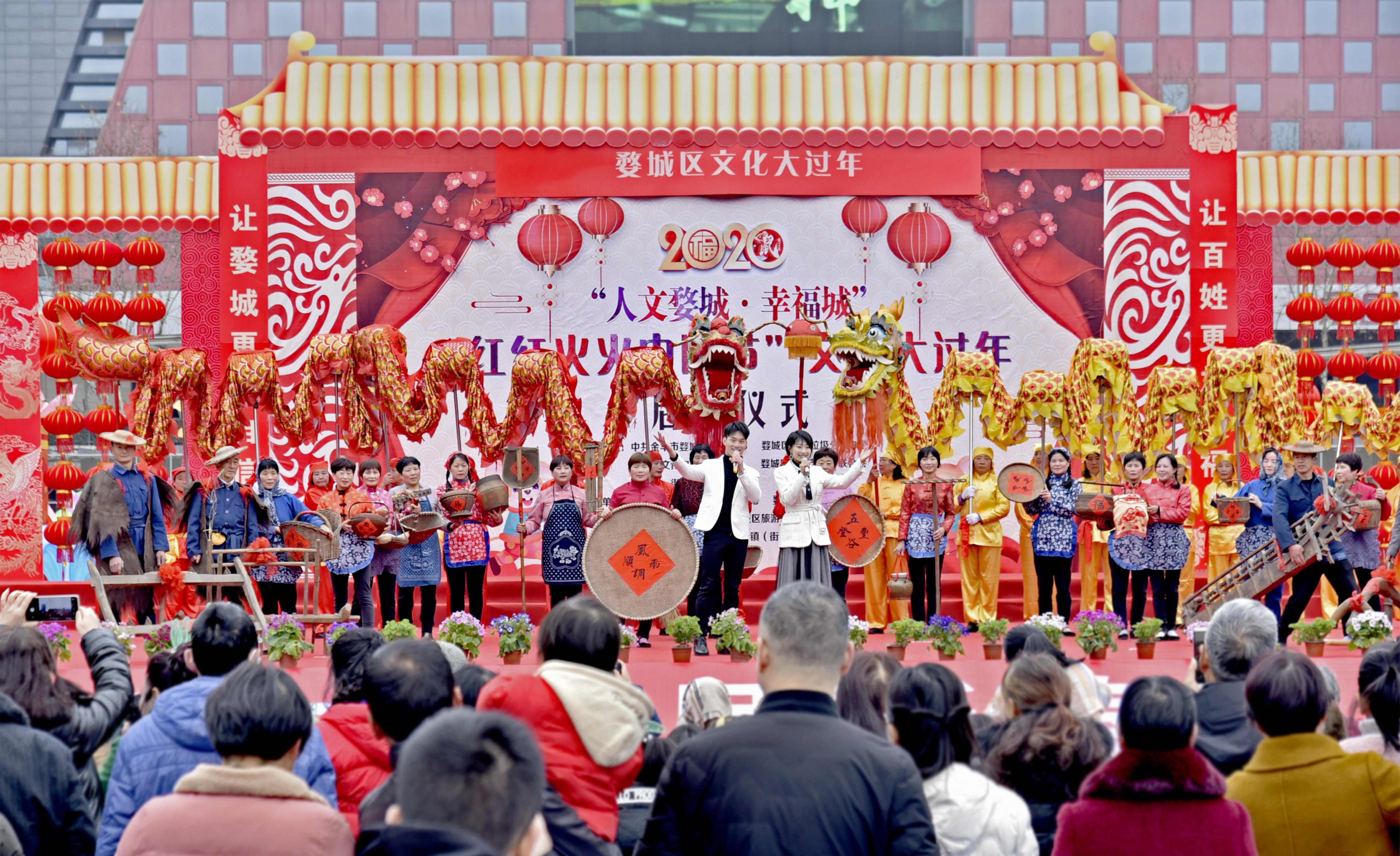 婺城“红红火火中国节”文化大过年活动由婺城区委宣传部、区城乡垃圾分类办、文旅体局、文联和各乡镇街道联合主办。活动主要分四个部分,分别是市民文化大过年、“文化暖冬”大集市、农村村晚和“欢乐元宵”文化大斗戏。活动期间,各乡镇(街道)将举办近百场农村“村晚”,并开展文艺下基层活动,为婺城百姓免费提供文艺演出、展览、拍摄全家福、展示非遗手工技艺、送春联等多种形式活动。