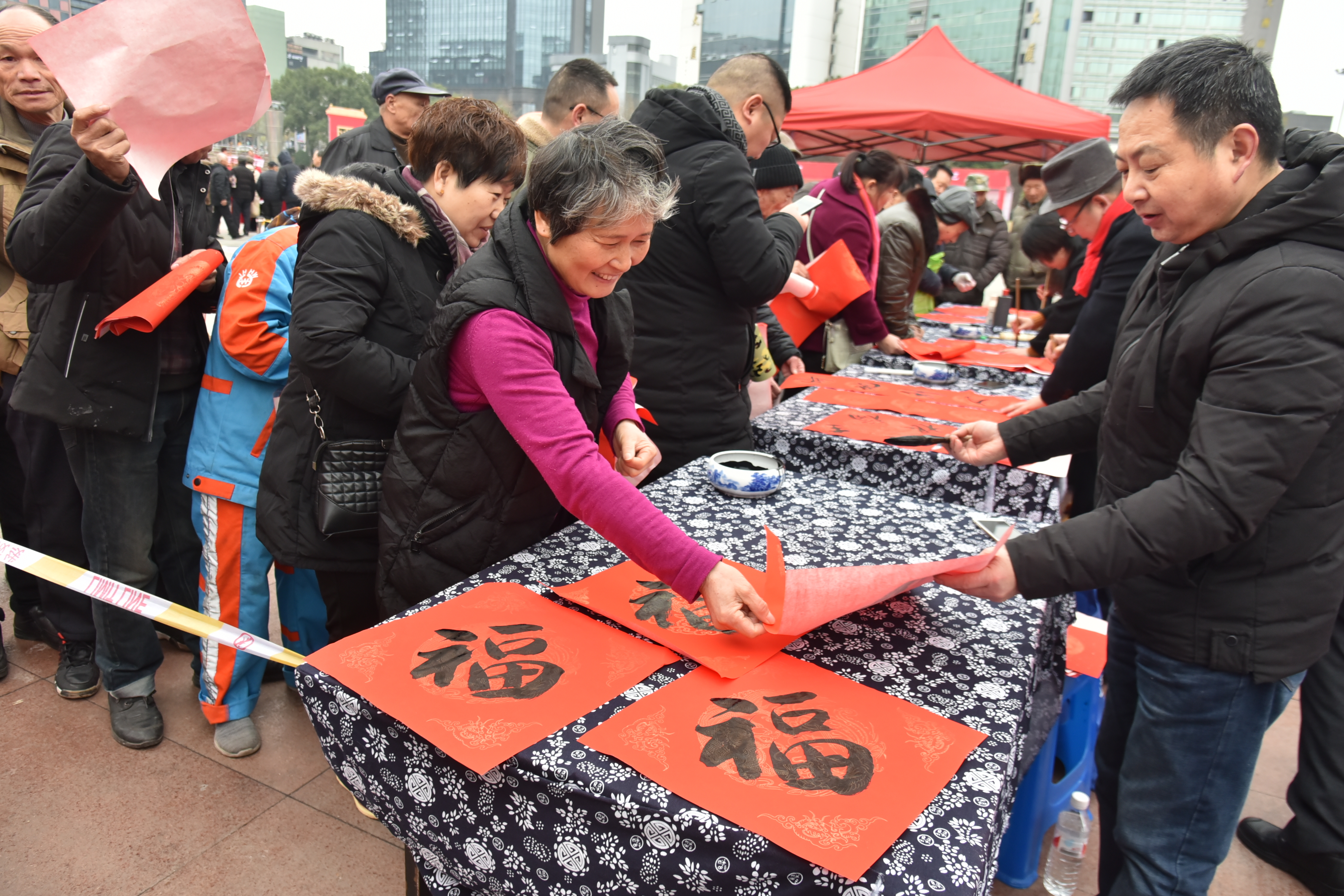 家住莲花井的郑益清老人是土生土长的金华人,他一大早就来到现场。“过年就得这样热闹!特别是城里,少了这些民俗活动,年味会越来越淡。希望相关部门能多举办这样的活动,让春节有更多的年味。”老人请现场的书法家为他写了一副春联,还饶有兴趣地与一群街坊邻居猜起了灯谜。