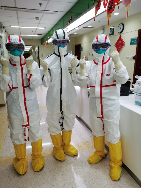 整整一天里,衣服就这样湿了干、干了湿,她们始终穿着三级防护服,坚守在自己的岗位上。
