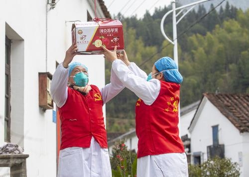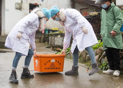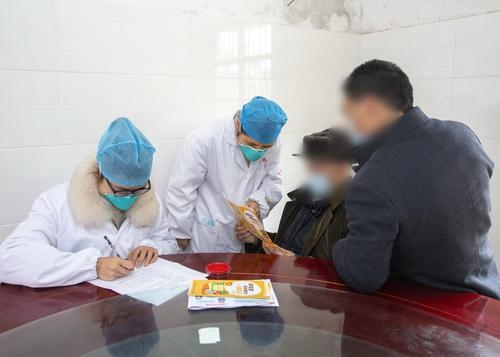 婺城区塔石乡卫生院组织医务人员走村入户,为密切接触者及部分湖北回乡人员提供上门服务。
