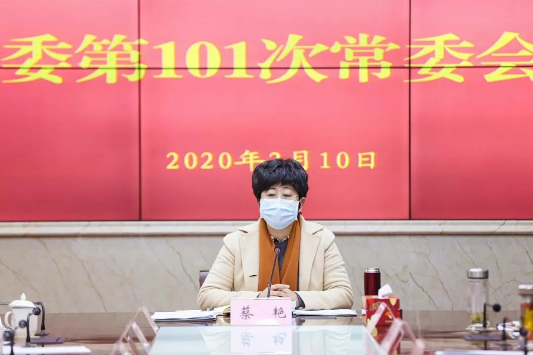 2月10日上午,婺城区委书记蔡艳主持召开区委第101次常委(扩大)会议,传达贯彻习近平总书记在中央全面依法治国委员会第三次会议上关于依法防控疫情的重要讲话精神和省委、市委常委会会议精神,听取我区新型冠状病毒肺炎疫情防控和企业复工复产等相关情况汇报,并通报区督考办对各乡镇(街道)疫情防控工作督查情况,研究部署下一步工作。蔡艳强调,要牢牢把握主动权,坚决两手抓,以最优的环境全面保障婺城防疫和经济社会安全有序发展。