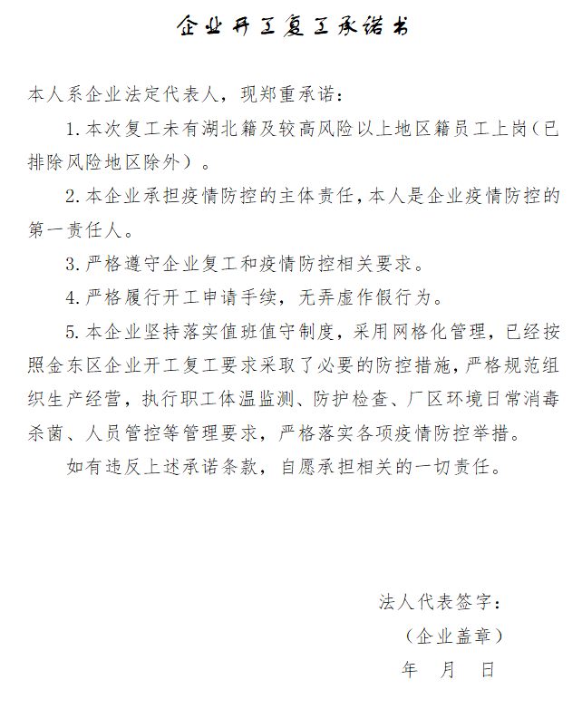 企业开工复工承诺书