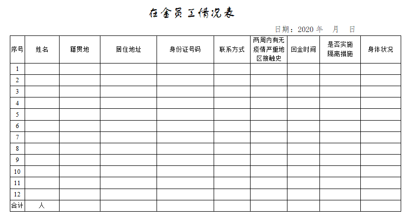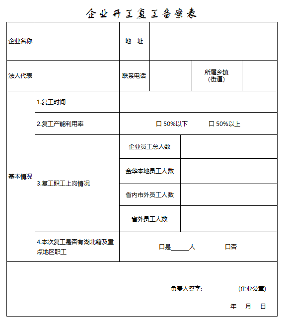 企业开工复工备案表