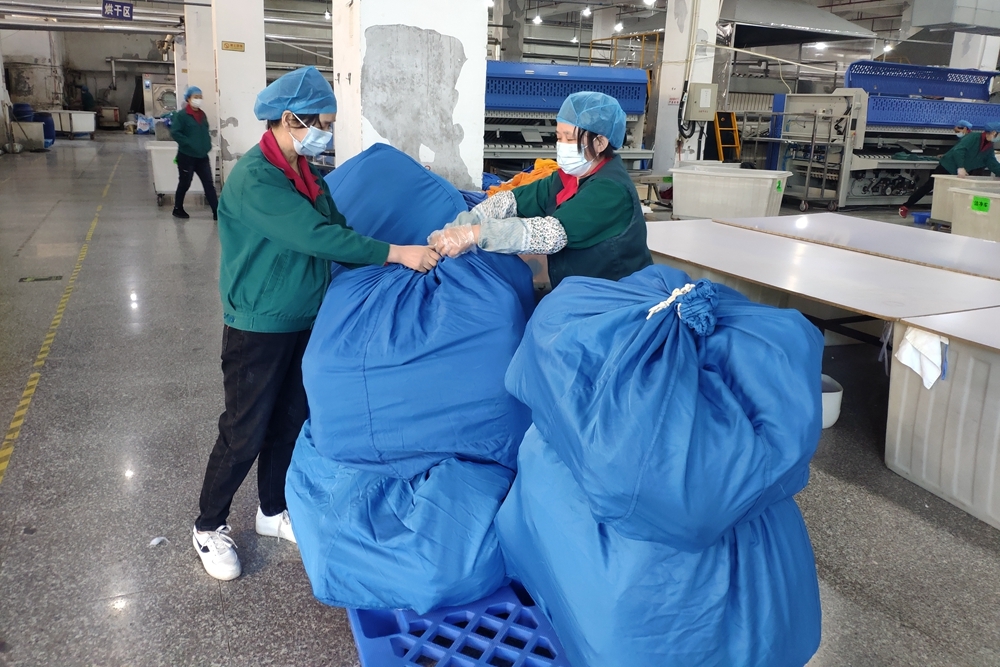 春节期间被公司紧急召回,接触的还是医护人员和病患用过的“危险”被服,部分员工难免表现出不理解和畏难情绪。“公司发出召集令后,有两名在医院一线收送医疗织物的员工就没回来,无奈只能让两名管理人员暂时顶上。”余梓君说,开始的那几天,他几乎每天都要给大家做思想工作。不过,绝大多数员工还是表示理解。“比如,周仙女往年春节都选择休假,在家陪伴患病的丈夫。听到公司有需要,她二话不说就回来了。”