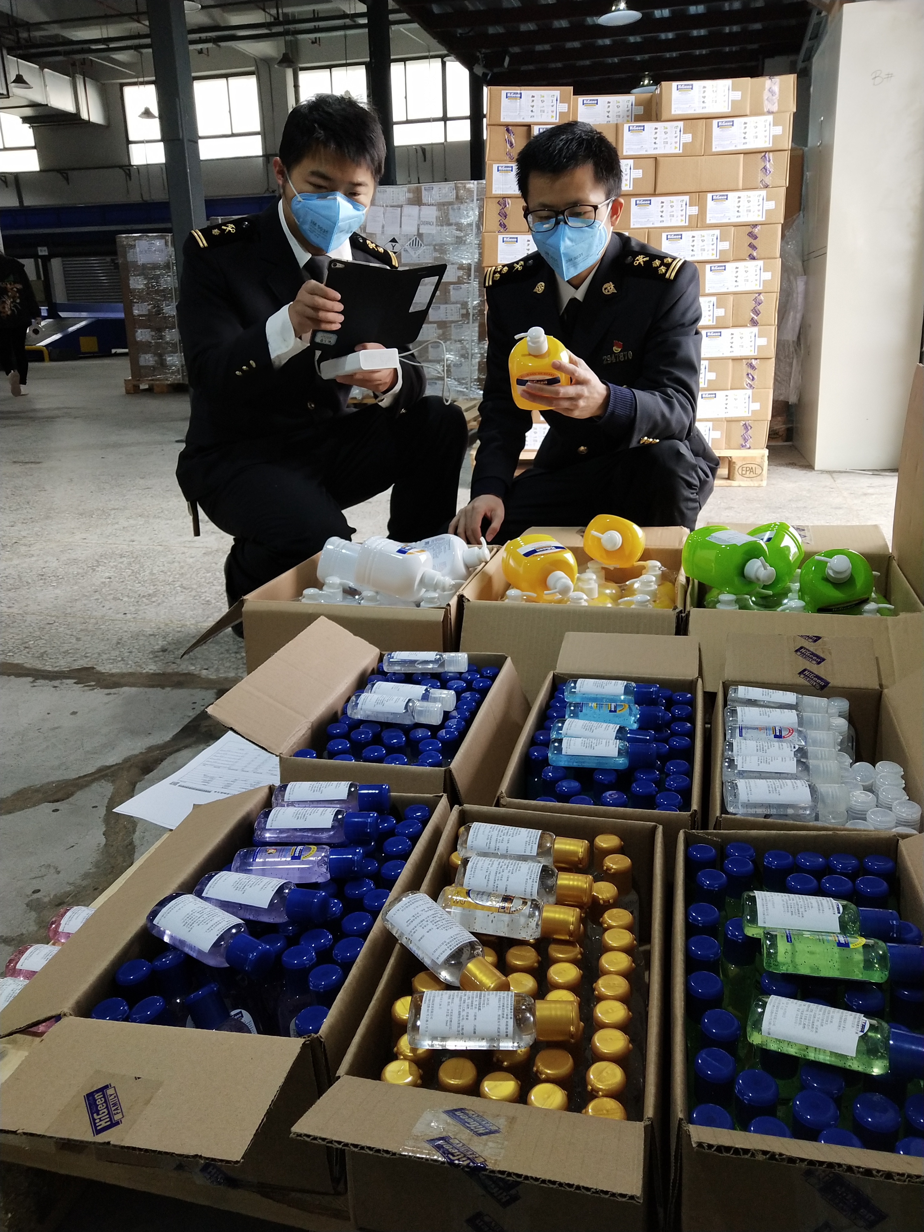 “货物已经检验完毕,海关已经放行,你们需要的抑菌洗手液很快就能送到。”2月15日上午9:15,几辆货车从中国邮政跨境电子商务义乌基地驶出,它们即将搭载着刚刚完成检验并已放行的14.4吨抑菌洗手液支援国内疫情防控一线。