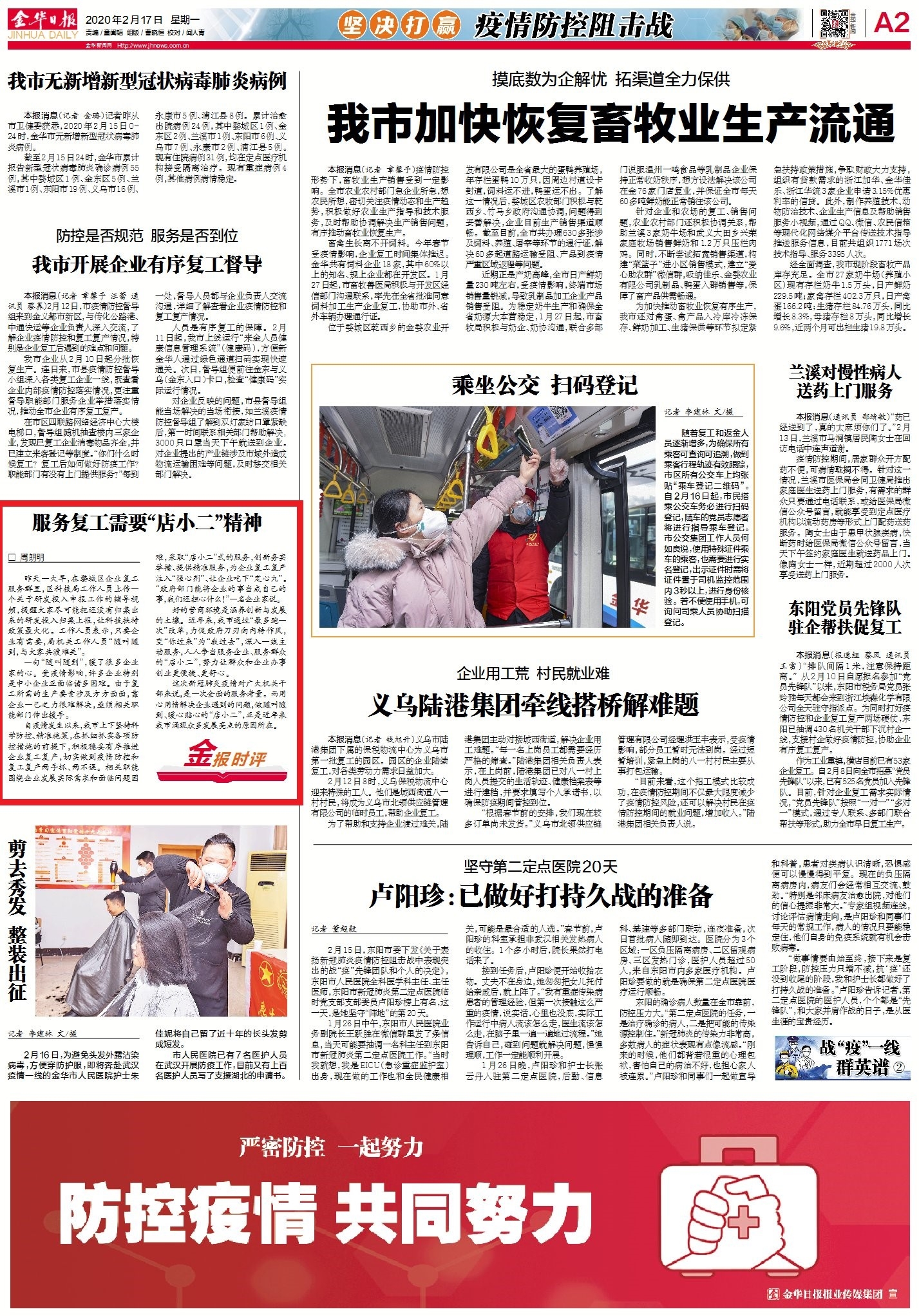 自疫情发生以来,我市上下坚持科学防控、精准施策,在抓细抓实各项防控措施的前提下,积极稳妥有序推进企业复工复产,切实做到疫情防控和复工复产两手抓、两不误。相关职能围绕企业发展实际需求和面临问题困难,采取“店小二”式的服务,创新务实举措、提供精准服务,为企业复工复产注入“强心剂”、让企业吃下“定心丸”。“政府部门能将企业的事当成自己的事,我们还担心什么!”一名企业家说。