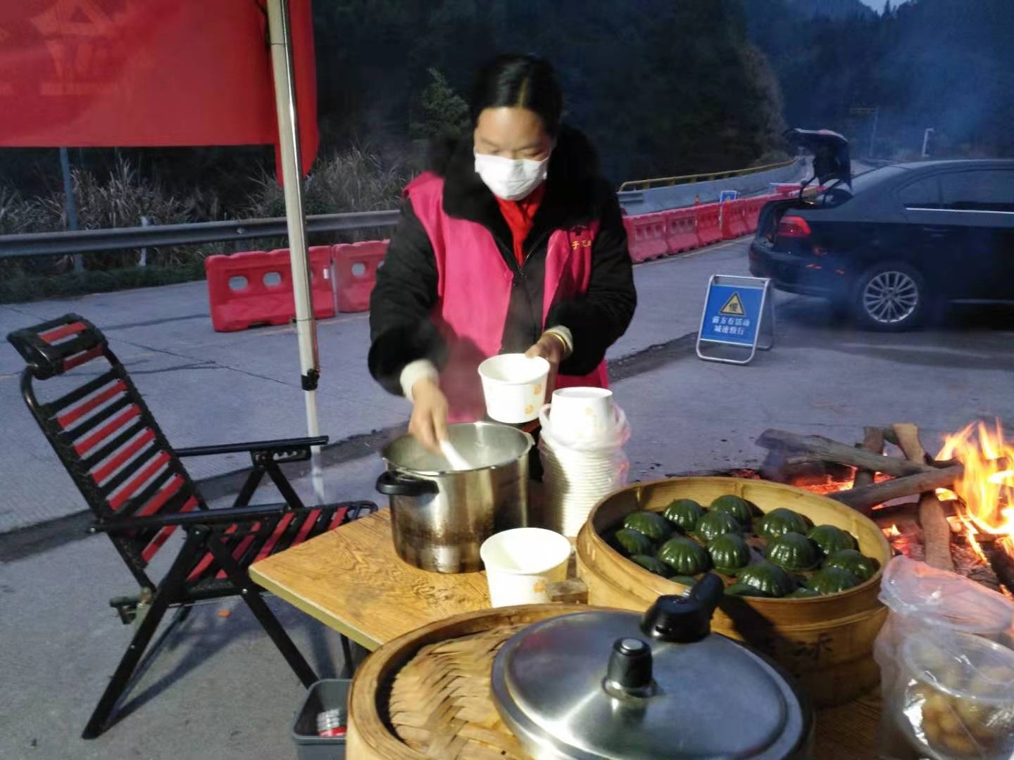 施卫飞是方前镇方前村的一名民宿业主。因疫情影响,她第一时间劝返了春节游客,还报名参加了村中“山妹子”值勤小组。“值守很辛苦、夜间天又冷,一顿早餐刚好暖暖胃。”施卫飞说,一开始,两三样早点就够她忙活。丈夫和婆婆看在眼里,便主动帮她。