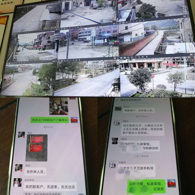 卡口的撤销后,马涧镇横木村也迅速开展了“网格化+特色化”的工作模式。在横木村办公大楼一楼的监控室内,值班人员李建和陈金锡正在查看监控。为让科技监管不留死角。该村在村各区域、路段安装监控,以24小时视频监视确保全天候管理到位。并通过信息科学收集不漏一人。把全体村民按常驻村内、金华市内务工、金华市外务工、不固定人员等分类,每日汇总外出和进村人员。同时,线上设立村民投诉电话及建立防疫微信群,线下通过严密网格也在积极发挥作用,让信息搜集工作能够以点到面铺开,做到不漏管一处,不漏报一人,筑牢心中的防线。