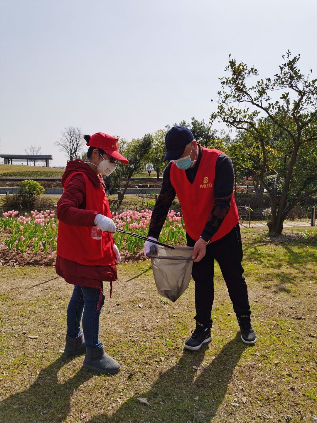 活动中,志愿者进行环境卫生清扫,同时向居民宣讲疫情防控知识,引导居民科学防控。连日来天气晴好,不少人到金满湖公园散心透气,志愿者还劝导一些摘下口罩的居民戴好口罩,不要大意。