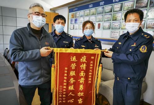 2月25日,金华英特医药物流有限公司副总经理朱新颜将一面写有“疫情面前勇担当、运管服务暖人心”的锦旗和一封感谢信,送到兰溪市道路运输管理局工作人员手中,感谢他们在疫情防控期间及时为企业办理免费通行证,帮助企业协调解决相关问题。