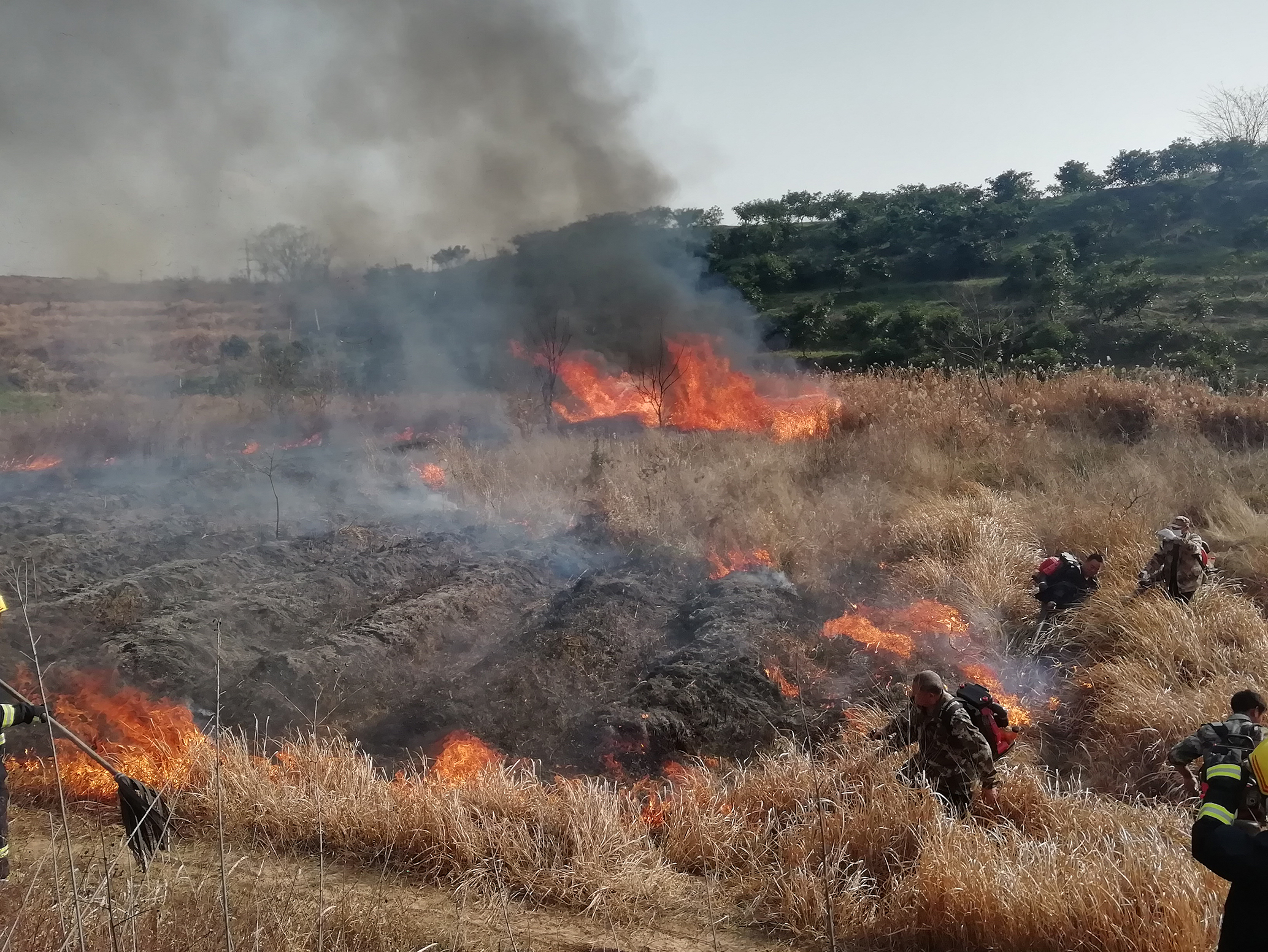 2月24日下午4时左右,义乌大陈镇双园村村民骆某在自留地里焚烧杂草,不料突然大风吹来,导致火势蔓延至旁边的山坡上。骆某急忙报警,并找来竹子、拖把等进行灭火。还好镇、村两级消防队员和护林员及时赶到,火势很快被控制。