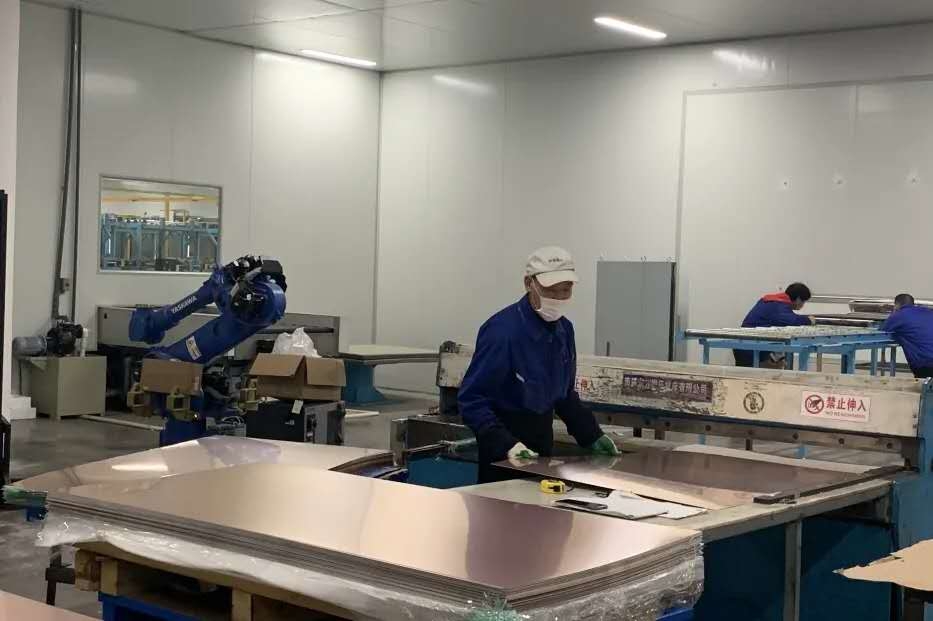 与厂区外的宁静形成鲜明对比的是,车间内一片火热场景,自动化机械正开足马力生产。记者在车间看到,3条覆铜板自动生产线正在高效运转,十余名工人戴着口罩、相互隔开,利用智能设备操控系统,操作人员即使在同一个车间,也可以实现“不碰面生产”,既保证了疫情期间的有效防控,也实现了高效的生产运转。“原先一条生产线需要多人操作,有了智能系统后,减少了约70%的劳动力,大大降低了劳动强度。”生产制造部副总经理谭文说。