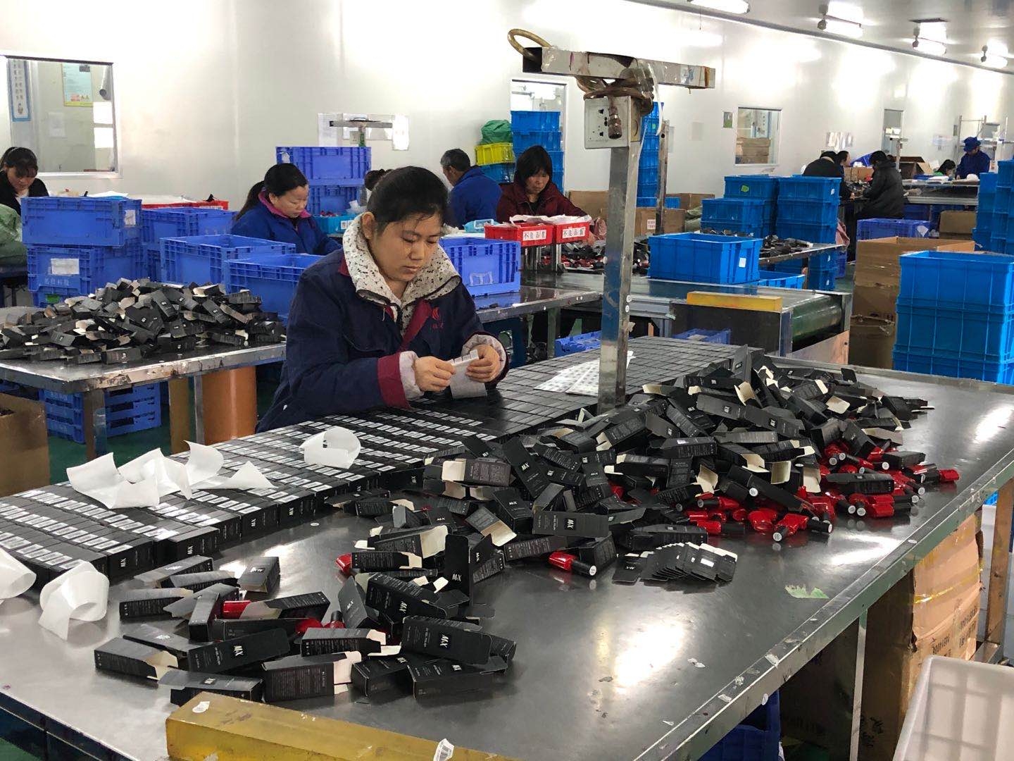 走进名仕科技口罩生产车间,17名员工分别在切片、挂耳带、包装三个工作区块,忙着口罩加工生产。这家有着13年研发、生产和销售经验的专业化妆品公司,复工后迅速将生产美妆、美甲的原料酒精用来制作液体消毒剂,同时投资150万元首期引进一条口罩生产线,每天可生产10万只,后期产能将扩大至每天50万只。