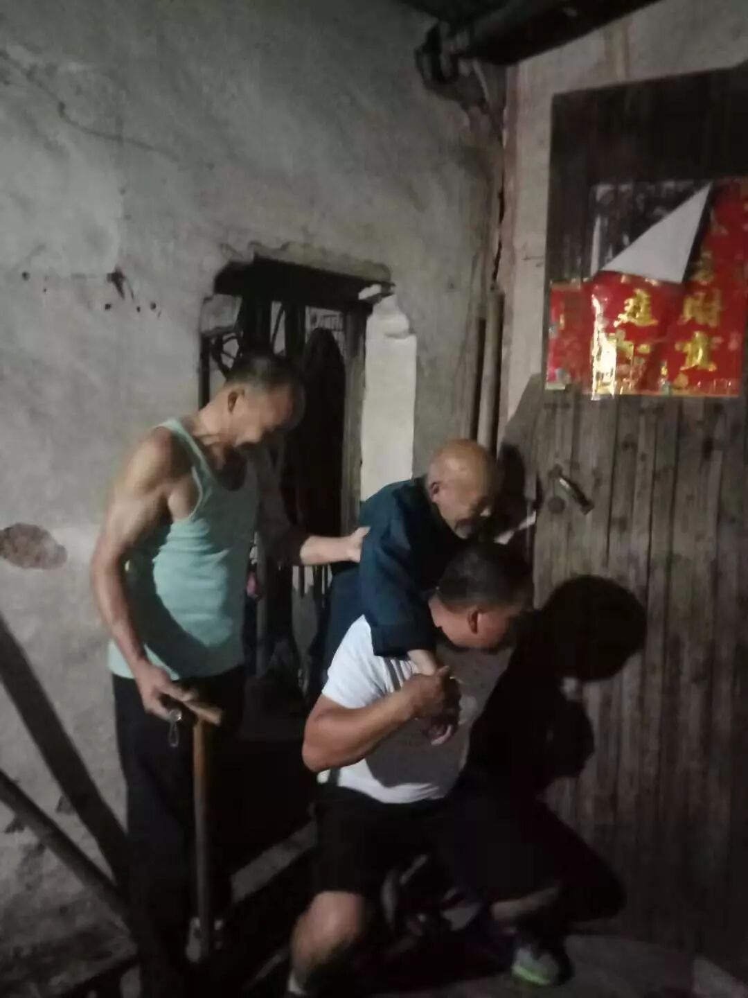 灵洞乡龚塘村分两组连夜对危旧房内人员进行转移。巡查过程中,发现一位93岁独居老人因腿脚不便,还未得到转移,雨势逐渐增大,情况紧急,村主任郑勇军立即背起老人将其转移至安全地点。最终,龚塘村安全转移所有危旧房内人员。